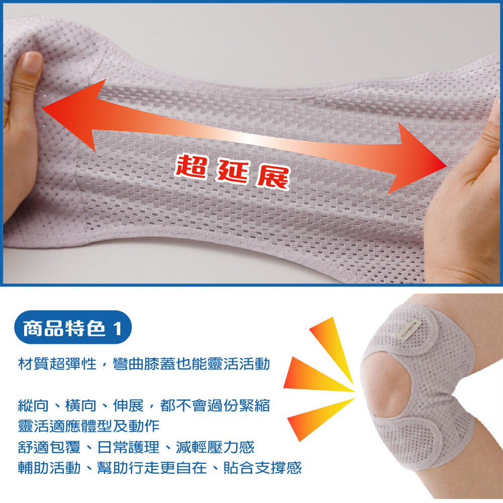 日本製【CERVIN】速乾彈力包覆護膝・ワンタッチテープで手軽に着脱ができる軽量タイプのひざサポーター!毎日の「家事」や「散歩」、「お買い物」時におススメです。・身生地は、吸汗性・速乾性に優れた東レ「セオ・アルファ(R)」を採用。・上下左右に伸縮し、締め付けすぎない着用感で、体型や動作に合わせて柔軟に対応。屈伸なのど曲げ伸ばしも楽に行えます。・総メッシュ素材で通気性も良く、汗が溜まりやすいひざ裏もムレにくく年中着用して頂けます。 ・薄手タイプなので、アウターにひびきにくくお出かけ時にも便利です。・色は、爽やかなラベンダーを採用。*日本最受歡迎,超彈力型護膝,兩側V字型的包覆帶,貼合支撐感。*H型設計可任意調整鬆緊度,一觸式膠帶即可輕鬆穿脫!*圓點狀樹脂貼合大腿肌,輔助活動、幫助行走更自在。*主體面料由日本東麗公司生產的 Theo Alpha製成,具有出色的吸汗和速乾性能。*縱向、橫向、橫向伸展,都不過分緊縮,靈活適應體型和動作,貼合膝蓋彎曲與伸展。*超彈性輕薄透氣型網眼材質,一年四季都可以穿著,即使是膝蓋後面容易積汗的地方。*輕薄材質即使穿在褲子裡,也不著痕跡。