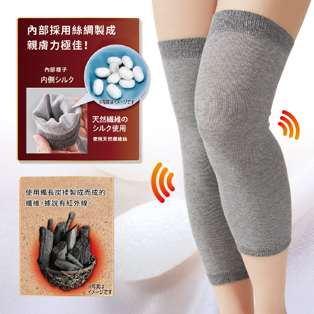 日本製【CERVIN】紅外線備長炭保暖長護套・ひざが冷えてお悩みの方オススメ。ひざを暖めて保護するサポーター。・内側がシルク素材で肌ざわりが良いです。・外側は、遠赤外線の放射性に優れた備長炭を練りこんだ繊維を使用。・ひざの関節まわりをあったかサポート。・上下の足口部分はリブ編みになっているので、着用時に足にぴったりフィットしてズレにくい。・よく伸びるので締めつけすぎずやわらかフィット!!・こだわりの日本製。*推薦給膝蓋冰冷的人。為膝蓋提供牢固的支撐。*內側採用絲質材質,親膚觸感良好。*外側採用備長炭混合纖維,具有優異的紅外線特性。*膝關節周圍的溫暖支撐。*大腿開口和小腿開口均帶有羅紋,因此穿著時可緊貼雙腳,不會滑落。*彈性良好,柔軟舒適,不會太緊。*日本製。注意事項本品不具醫療效果。有下列情況者,使用前請先諮詢醫師:穿戴部位有傷口/搔癢/孕婦/高血壓/心臟/腎臟疾病/血循不佳/糖尿病/皮膚炎。合成纖維過敏者,請勿過度勒緊。使用中若有不適,請停止使用並諮詢醫師。請勿強力拉扯,避免損壞商品。如果佩戴時受到強烈摩擦,或者在被水或汗水弄濕時與其他物體摩擦,顏色可能會發生轉移。長時間暴露在陽光或熒光燈下可能會導致變色。請放置於嬰幼兒不易拿取處 。請勿接近火源。使用效果因人而異。訂購時請先審慎確認及測量適用尺寸。顏色:灰尺寸:ML:膝蓋周圍 25 至 50 cmLL:膝蓋周圍 30 至 60 cm材質:絲、棉、其他產地:日本製洗滌方式:手洗/水溫低於30°C/中性洗劑/勿漂白/勿烘乾/勿熨燙/陰涼處懸掛晾乾/勿專業乾洗/用毛巾壓去過多水分後陰乾國際條碼:ML4985697240594LL4985697240600