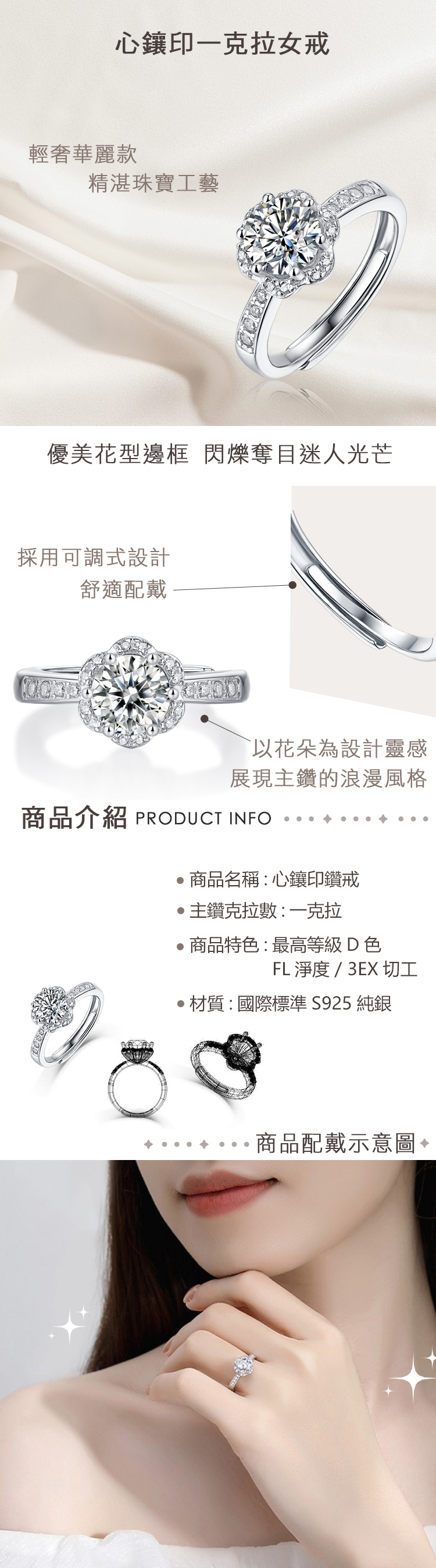 頂級CF鑽:火彩、亮度、均比鑽石更閃耀、燦爛 ●主鑽品質:克拉數(Carat):一克拉 ●商品特色:最高等級D色 / FL淨度 / 3EX切工 ★切工:八心八箭邱比特比利時切工,完美切割57個切面,璀璨光芒 ★材質:國際標準S925純銀,抗過敏,抗氧化 ●商品標準配備: -附CF專屬證書 -附專用拭銀布 -原廠精美歐式禮盒、提袋,送禮自用兩相宜 【購買注意事項】 -因人工測量及於電腦螢幕色差等非人為因素,商品實際尺寸&顏色可能存在微小差異,請以收到實際商品為主! 【貼心小提醒】 -銀製飾品會因接觸到空氣、汗水氧化時而變黑時,可使用拭銀布擦拭,立即恢復它的光澤亮麗色彩 -請勿浸泡溫泉水及化學藥劑、清潔劑之中 -因拭銀布本身有藥劑,使用完畢後記得洗手!!