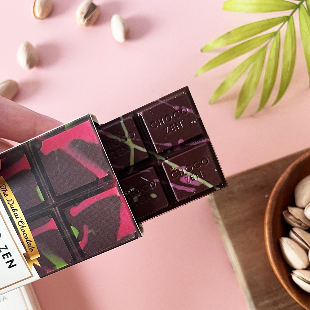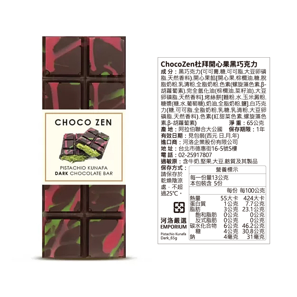 ✓ 濃郁的黑巧克力包覆酥脆的庫納法開心果醬