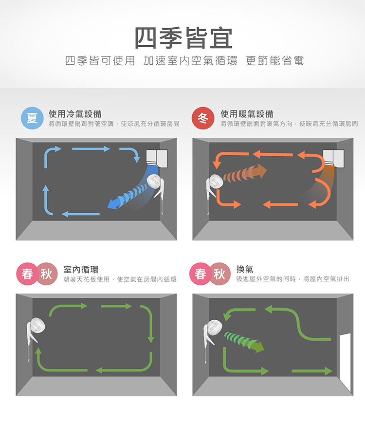 搭配冷暖氣使用,加強循環對流