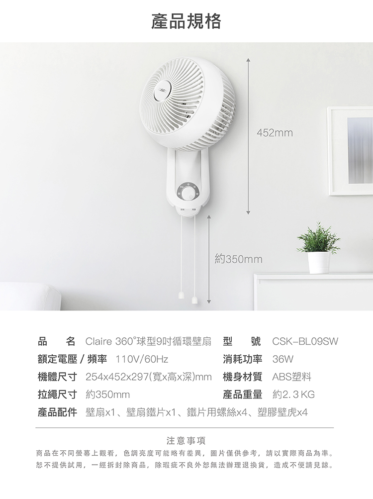 擺頭、風量拉繩, 操作更便利
