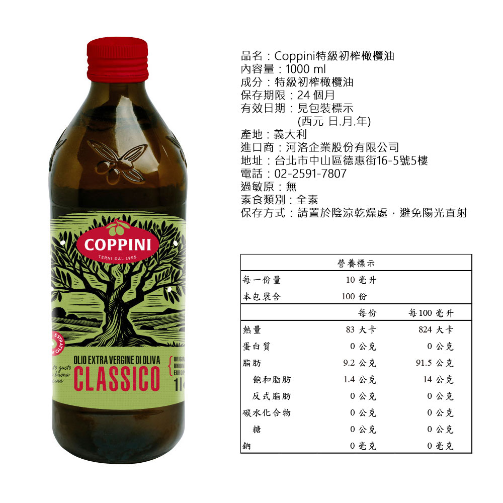 ●Coppini】特級初榨橄欖油 經典款 1000ml