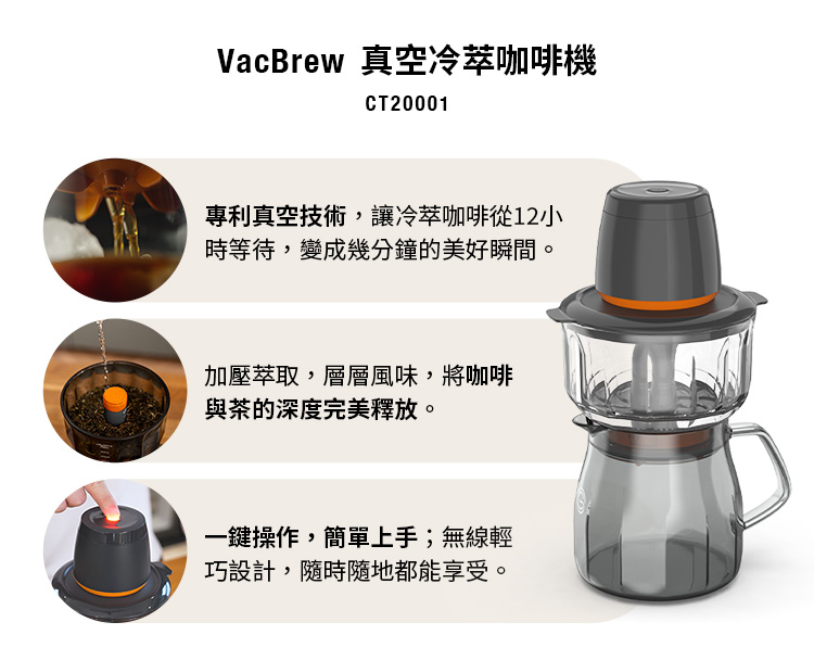 創新技術讓萃取咖啡時間變成5~12分鐘,真空萃取技術,讓您輕鬆喝咖啡過生活。