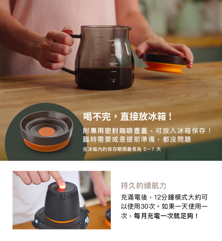 ● 附專用密封咖啡壺蓋,可放入冰箱保存