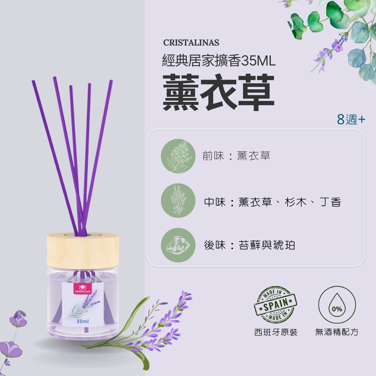 CRISTALINAS REED DIFFUSER 8 WEEKS 35ML _LAVENDER