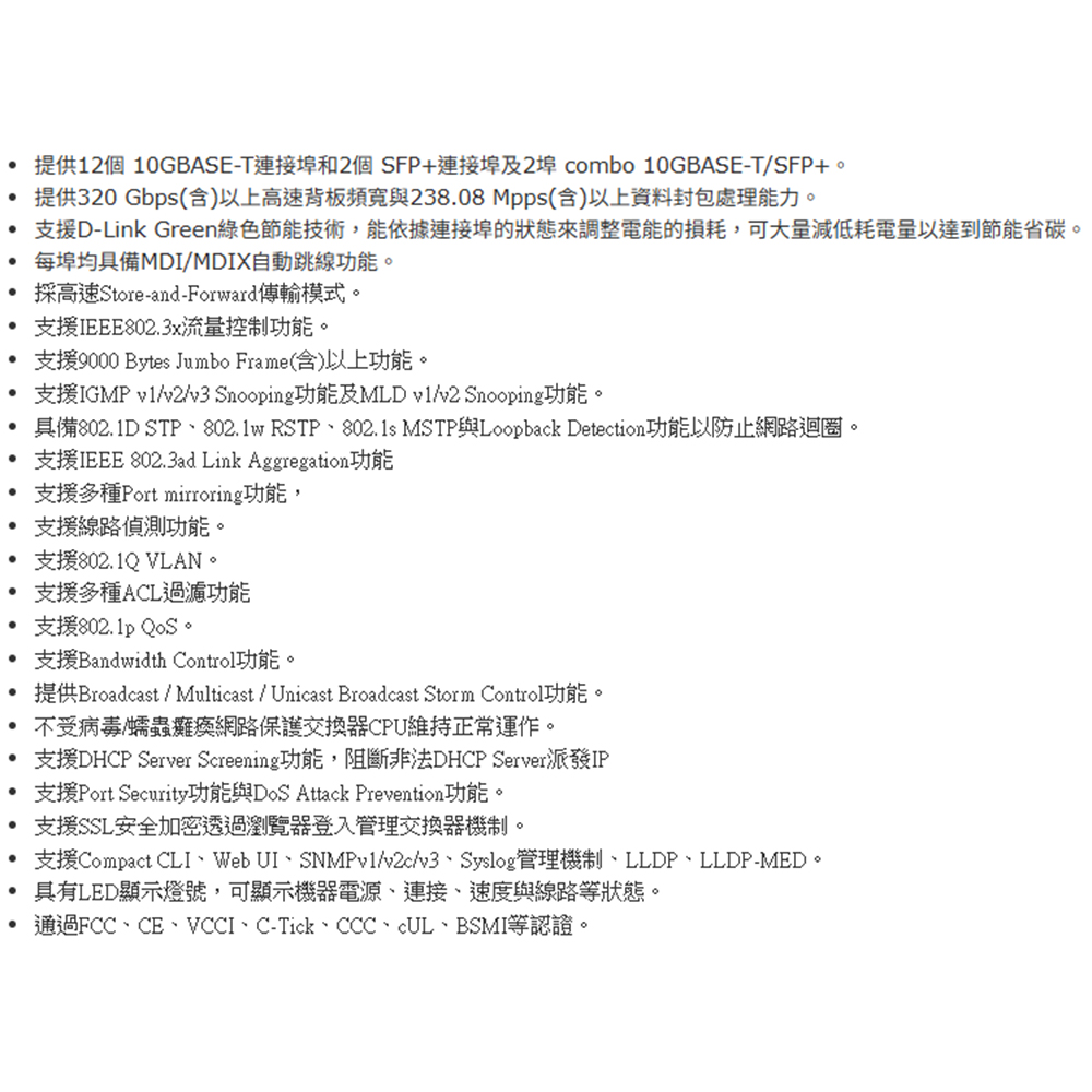 -具備802.1D STP、802.1w RSTP、802.1s MSTP與Loopback Detection功能以防止網路迴圈。