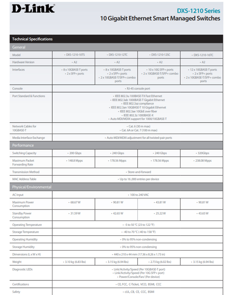 -12個10GBASE-T連接埠和2個SFP+連接埠及2埠combo 10GBASE-T/SFP+。