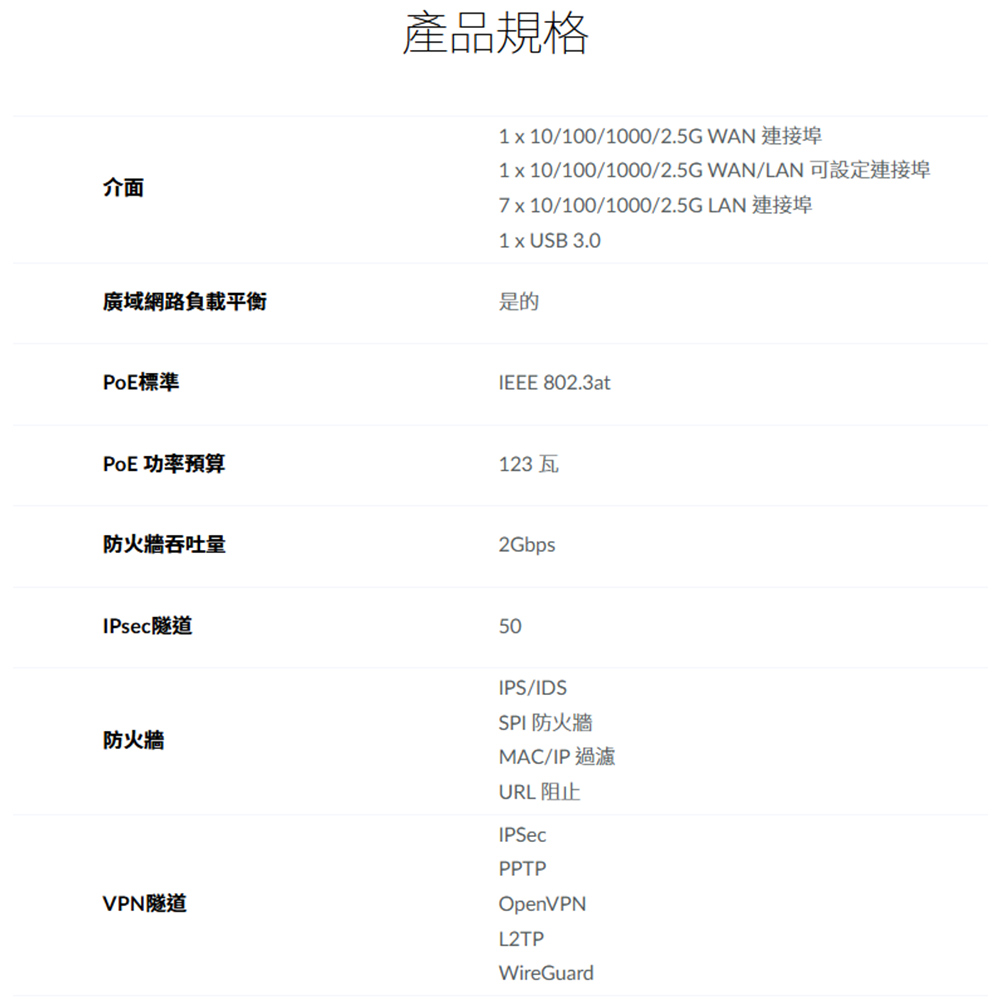 -其強大的防火牆和VPN功能可確保網路存取的安全性,確保所有連接裝置和遠端站點的資料傳輸安全可靠。