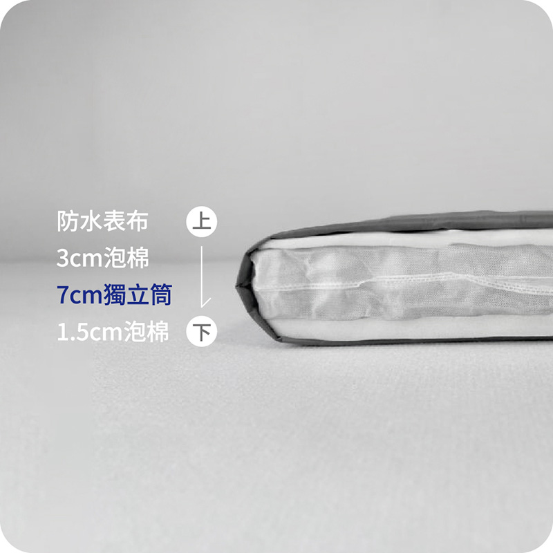 ▪ 內襯:3cm 舒壓泡棉+7cm 獨立筒彈簧 + 1.5cm 緩衝底層