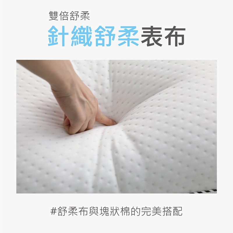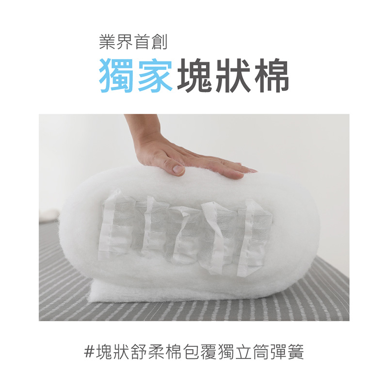 ▪ 枕心:中鋼獨立筒彈簧/獨家專利塊狀棉