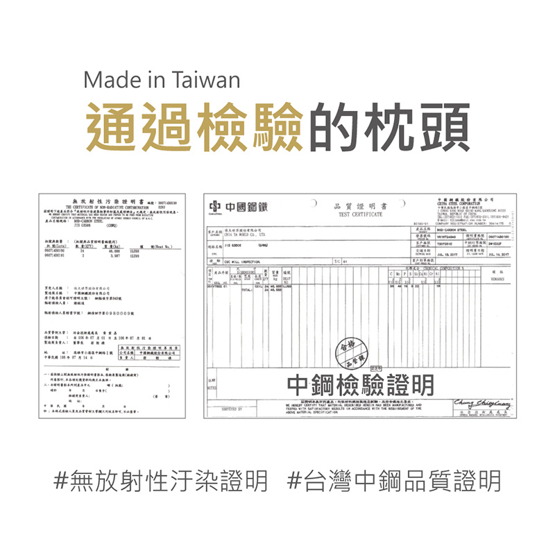 ▪ 證書:【無放射性汙染】、【中鋼品質證明】