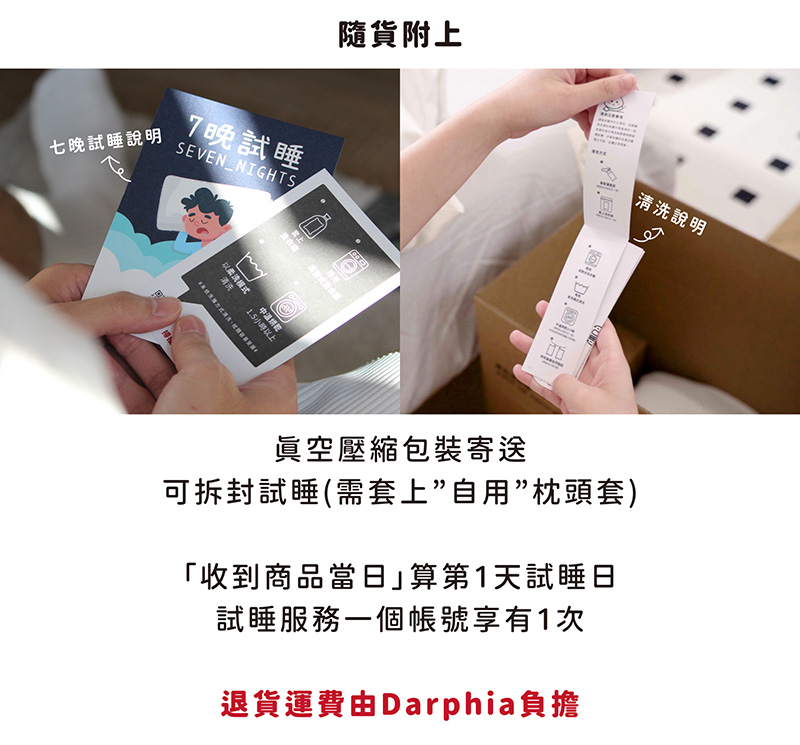 ▪ 七晚試睡,不喜歡可申請退費;零壓力!試睡就得在家睡