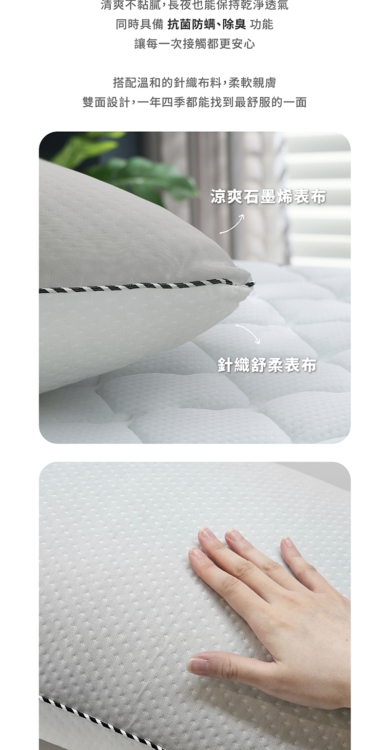 ▪ 表布:(正)涼爽石墨烯表布、(反)針織舒柔布