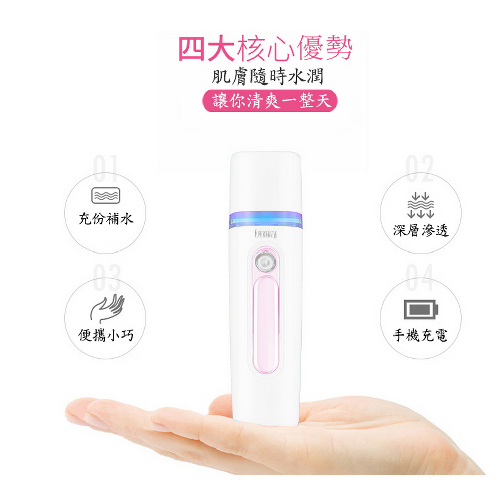 《商品介紹》奈米霧化水分子 潤濕肌膚炎炎夏日,補充肌膚水份攜帶方便 隨時使用霧化水分子,吸收快速在乾燥地方,保濕肌膚保濕保養,身心愉悅好心情時尚設計,精美實用