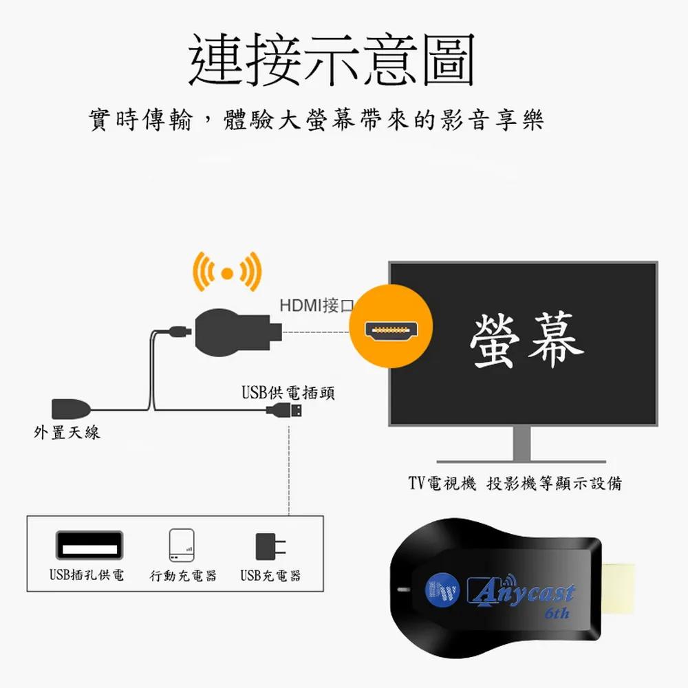 隨時隨地大螢幕娛樂操作簡單影音投影一機多用,教學娛樂導航全搞定免安裝任何軟體無線連結,影音同步分享支援蘋果/安卓/電腦無線投影可電腦直接電視同步顯示高畫質輸出,高速穩定傳輸《商品介紹》隨著智慧型裝置普及,手機、平板、電腦已成為日常不可或缺的工具。但螢幕太小往往影響學習與娛樂體驗。現在,只要一個 無線投影器,就能輕鬆將螢幕畫面同步到電視或投影機,大螢幕享受更清晰、更震撼!隨插即投:操作簡單,免驅動免APP。跨平台支援:支援 iOS / Android / Windows / Mac OS。高畫質輸出:支援 Full HD ,清晰不卡頓。穩定傳輸:低延遲設計,影音同步。輕巧便攜:出差、上課、居家,一機搞定。【應用場景】居家娛樂:追劇、看電影,大螢幕更沉浸。遊戲對戰:手機秒變遊戲主機,刺激加倍。教育教學:課堂同步投影,互動更生動。會議簡報:商務展示更專業,告別繁瑣連線。汽車導航:手機地圖投影到大螢幕,安全又直觀。《注意事項》1.如果要使用在汽車的螢幕投影,請先確認汽車是否有HDMI或AV影音輸入,請確認後再進行購買。2. 本商品是HDMI影音傳輸介面,如果是汽車是AV(黃白紅三色插孔)則需要另外自行準備HDMI轉AV的轉換器才可以使用。《商品配備》無線影音鏡像傳輸器 x1WiFi模組線x1說明書 x14大好禮: USB充電器x1 + HDMI傳輸線x1 + HDMI母對母轉接頭x1 + 手機支架x1《商品規格》廠牌: Dawise型號: 六代WD14顏色: 黑支援的設備: 蘋果,安卓,微軟裝置支援影音同步傳輸模式: AirPlay/Miracast/DLNA/WIDIUSB供電(DC+5V)HDMI連接電視產地: 中國大陸產品保固: 主機保固3個月,配件/贈品保固1個月,保固範圍不包含人為損壞。《NCC認證字號》CCAJ14LP398BT2