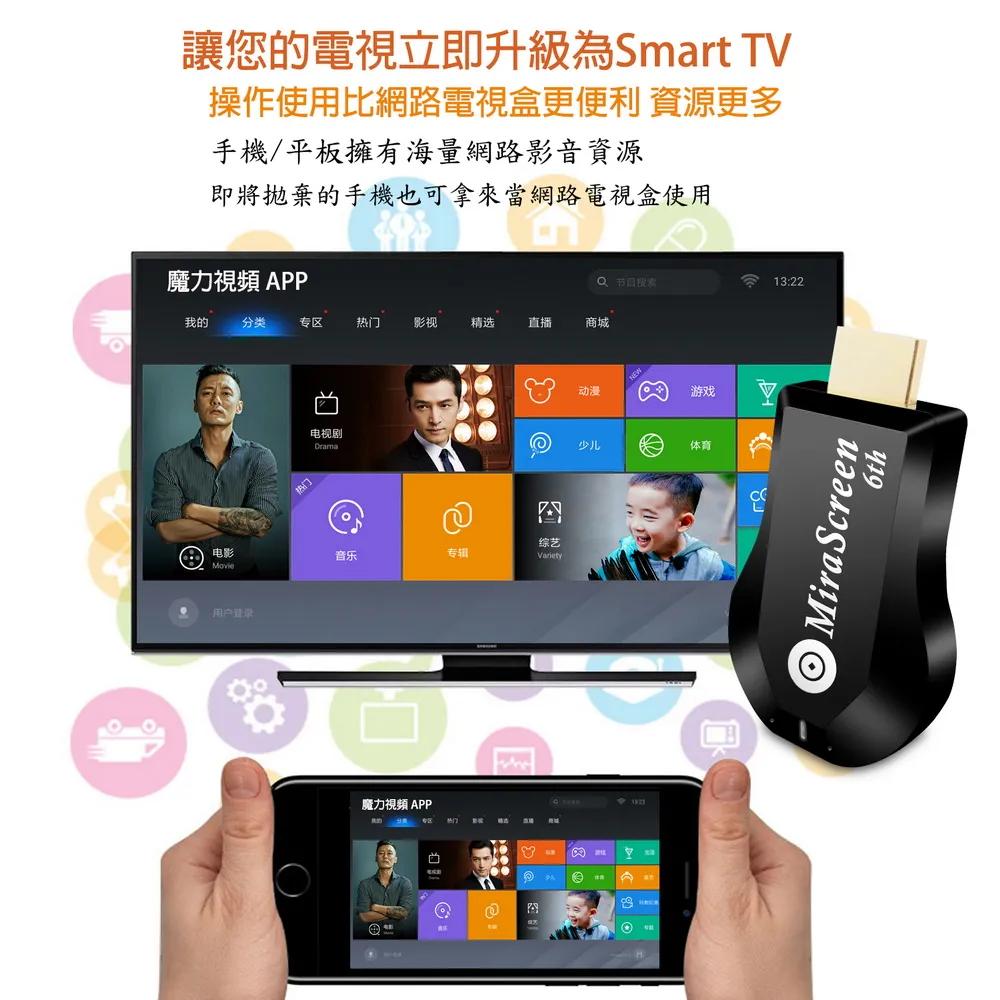 隨時隨地大螢幕娛樂操作簡單影音投影一機多用,教學娛樂導航全搞定免安裝任何軟體無線連結,影音同步分享支援蘋果/安卓/電腦無線投影可電腦直接電視同步顯示高畫質輸出,高速穩定傳輸《商品介紹》隨著智慧型裝置普及,手機、平板、電腦已成為日常不可或缺的工具。但螢幕太小往往影響學習與娛樂體驗。現在,只要一個 無線投影器,就能輕鬆將螢幕畫面同步到電視或投影機,大螢幕享受更清晰、更震撼!隨插即投:操作簡單,免驅動免APP。跨平台支援:支援 iOS / Android / Windows / Mac OS。高畫質輸出:支援 Full HD ,清晰不卡頓。穩定傳輸:低延遲設計,影音同步。輕巧便攜:出差、上課、居家,一機搞定。【應用場景】居家娛樂:追劇、看電影,大螢幕更沉浸。遊戲對戰:手機秒變遊戲主機,刺激加倍。教育教學:課堂同步投影,互動更生動。會議簡報:商務展示更專業,告別繁瑣連線。汽車導航:手機地圖投影到大螢幕,安全又直觀。《注意事項》1.如果要使用在汽車的螢幕投影,請先確認汽車是否有HDMI或AV影音輸入,請確認後再進行購買。2. 本商品是HDMI影音傳輸介面,如果是汽車是AV(黃白紅三色插孔)則需要另外自行準備HDMI轉AV的轉換器才可以使用。《商品配備》無線影音鏡像傳輸器 x1說明書 x14大好禮: USB充電器x1 + USB供電線x1 + HDMI延長線x1 + 手機支架x1《商品規格》廠牌: Dawise型號: 六代WD13顏色: 黑支援的設備: 蘋果,安卓,微軟裝置支援影音同步傳輸模式: AirPlay/Miracast/DLNA/WIDIUSB供電(DC+5V)HDMI連接電視產地: 中國大陸產品保固: 主機保固3個月,配件/贈品保固1個月,保固範圍不包含人為損壞。《NCC認證字號》CCAJ14LP398AT0