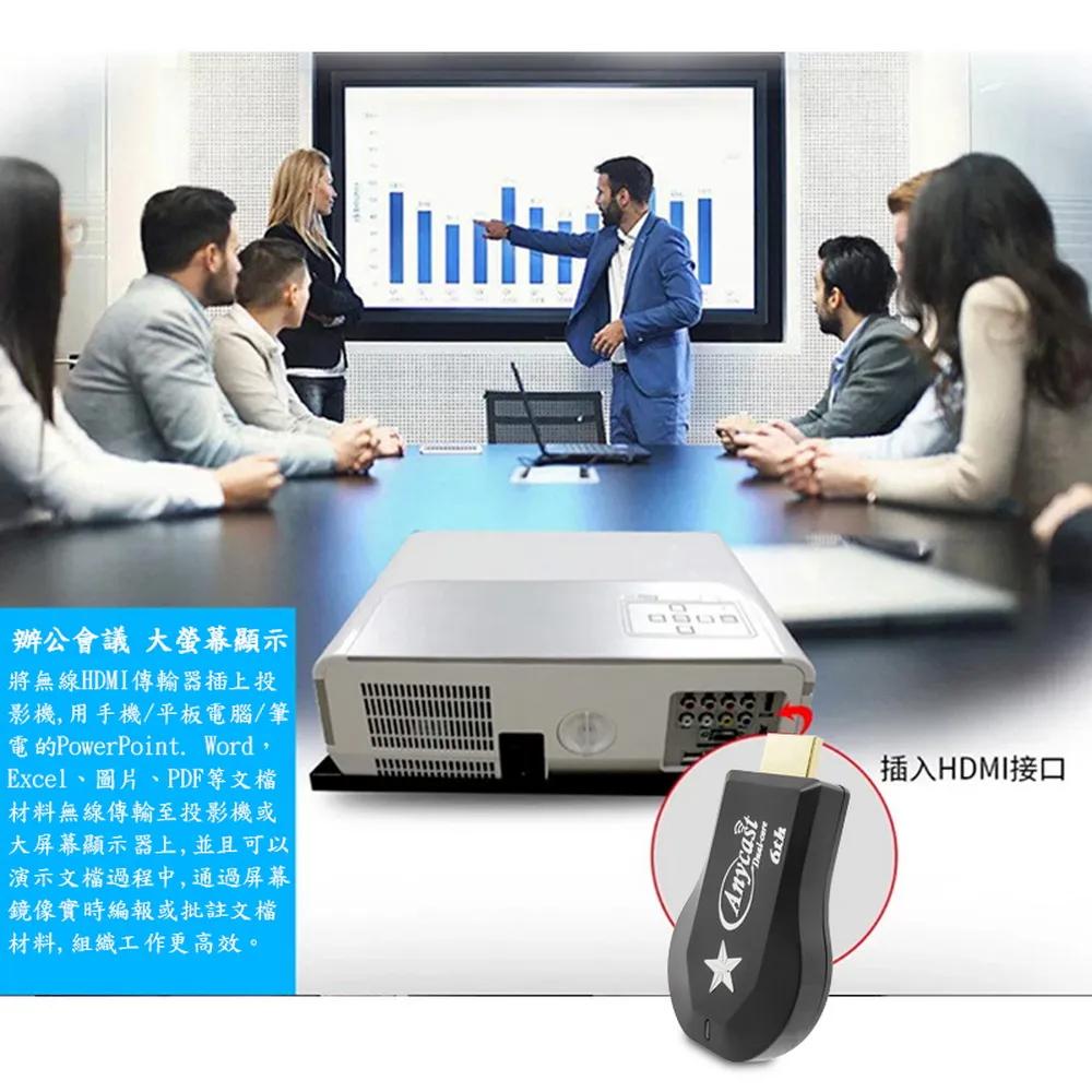 隨時隨地大螢幕娛樂操作簡單影音投影一機多用,教學娛樂導航全搞定免安裝任何軟體無線連結,影音同步分享支援蘋果/安卓/電腦無線投影可電腦直接電視同步顯示高畫質輸出,高速穩定傳輸《商品介紹》隨著智慧型裝置普及,手機、平板、電腦已成為日常不可或缺的工具。但螢幕太小往往影響學習與娛樂體驗。現在,只要一個 無線投影器,就能輕鬆將螢幕畫面同步到電視或投影機,大螢幕享受更清晰、更震撼!隨插即投:操作簡單,免驅動免APP。跨平台支援:支援 iOS / Android / Windows / Mac OS。高畫質輸出:支援 Full HD ,清晰不卡頓。穩定傳輸:低延遲設計,影音同步。輕巧便攜:出差、上課、居家,一機搞定。【應用場景】居家娛樂:追劇、看電影,大螢幕更沉浸。遊戲對戰:手機秒變遊戲主機,刺激加倍。教育教學:課堂同步投影,互動更生動。會議簡報:商務展示更專業,告別繁瑣連線。汽車導航:手機地圖投影到大螢幕,安全又直觀。《注意事項》1.如果要使用在汽車的螢幕投影,請先確認汽車是否有HDMI或AV影音輸入,請確認後再進行購買。2. 本商品是HDMI影音傳輸介面,如果是汽車是AV(黃白紅三色插孔)則需要另外自行準備HDMI轉AV的轉換器才可以使用。《商品配備》無線影音鏡像傳輸器 x1說明書 x1WiFi模組線x14大好禮: USB充電器x1 + HDMI傳輸線x1 + HDMI母對母轉接頭 + 手機支架x1《商品規格》廠牌: Dawise型號: 六代WD01顏色: 黑支援的設備: 蘋果,安卓,微軟裝置支援影音同步傳輸模式: AirPlay/Miracast/DLNA/WIDIUSB供電(DC+5V)HDMI連接電視產地: 中國大陸產品保固: 主機保固3個月,配件/贈品保固1個月,保固範圍不包含人為損壞。《NCC認證字號》CCAJ14LP3980T8