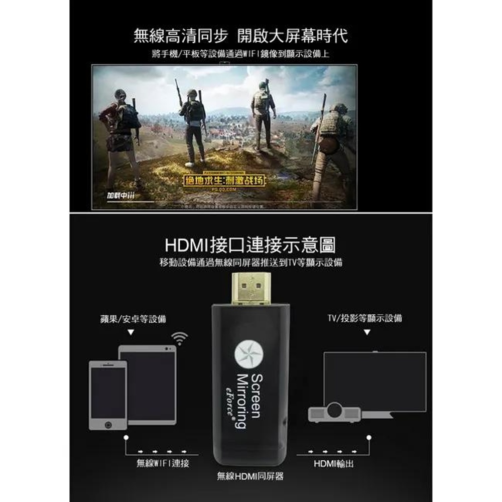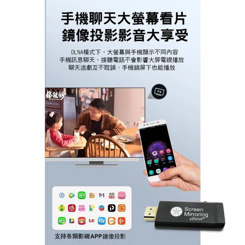 隨時隨地大螢幕娛樂操作簡單影音投影一機多用,教學娛樂導航全搞定免安裝任何軟體無線連結,影音同步分享支援蘋果/安卓/電腦無線投影可電腦直接電視同步顯示高畫質輸出,高速穩定傳輸《商品介紹》隨著智慧型裝置普及,手機、平板、電腦已成為日常不可或缺的工具。但螢幕太小往往影響學習與娛樂體驗。現在,只要一個 無線投影器,就能輕鬆將螢幕畫面同步到電視或投影機,大螢幕享受更清晰、更震撼!隨插即投:操作簡單,免驅動免APP。跨平台支援:支援 iOS / Android / Windows / Mac OS。高畫質輸出:支援 Full HD ,清晰不卡頓。穩定傳輸:低延遲設計,影音同步。輕巧便攜:出差、上課、居家,一機搞定。【應用場景】居家娛樂:追劇、看電影,大螢幕更沉浸。遊戲對戰:手機秒變遊戲主機,刺激加倍。教育教學:課堂同步投影,互動更生動。會議簡報:商務展示更專業,告別繁瑣連線。汽車導航:手機地圖投影到大螢幕,安全又直觀。《注意事項》1.如果要使用在汽車的螢幕投影,請先確認汽車是否有HDMI或AV影音輸入,請確認後再進行購買。2. 本商品是HDMI影音傳輸介面,如果是汽車是AV(黃白紅三色插孔)則需要另外自行準備HDMI轉AV的轉換器才可以使用。《商品配備》無線影音鏡像傳輸器 x1WiFi無線模組x1說明書 x14大好禮: HDMI線x1 + HDMI母對母轉接頭x1 + USB充電器 x1 + 便攜手機支架x1《商品規格》廠牌: Dawise型號: 六代E6顏色: 黑支援的設備: 蘋果,安卓,微軟裝置支援影音同步傳輸模式: AirPlay/Miracast/DLNA/WIDIUSB供電(DC+5V)HDMI連接電視產地: 中國大陸產品保固: 主機保固3個月,配件/贈品保固1個月,保固範圍不包含人為損壞。《NCC認證字號》 CCAJ15LP0240T0