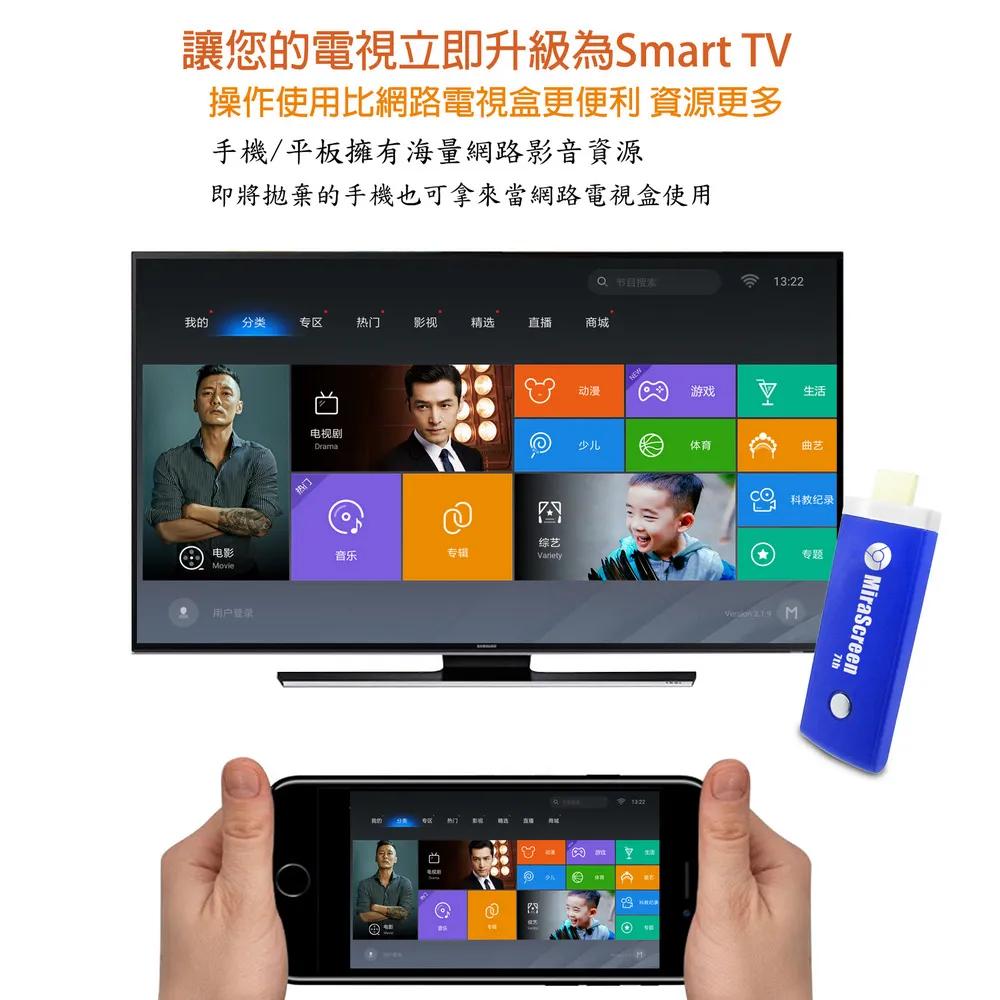 隨時隨地大螢幕娛樂操作簡單影音投影一機多用,教學娛樂導航全搞定免安裝任何軟體無線連結,影音同步分享支援蘋果/安卓/電腦無線投影可電腦直接電視同步顯示高畫質輸出,高速穩定傳輸《商品介紹》隨著智慧型裝置普及,手機、平板、電腦已成為日常不可或缺的工具。但螢幕太小往往影響學習與娛樂體驗。現在,只要一個 無線投影器,就能輕鬆將螢幕畫面同步到電視或投影機,大螢幕享受更清晰、更震撼!隨插即投:操作簡單,免驅動免APP。跨平台支援:支援 iOS / Android / Windows / Mac OS。高畫質輸出:支援 Full HD ,清晰不卡頓。穩定傳輸:低延遲設計,影音同步。輕巧便攜:出差、上課、居家,一機搞定。【應用場景】居家娛樂:追劇、看電影,大螢幕更沉浸。遊戲對戰:手機秒變遊戲主機,刺激加倍。教育教學:課堂同步投影,互動更生動。會議簡報:商務展示更專業,告別繁瑣連線。汽車導航:手機地圖投影到大螢幕,安全又直觀。《注意事項》1.如果要使用在汽車的螢幕投影,請先確認汽車是否有HDMI或AV影音輸入,請確認後再進行購買。2. 本商品是HDMI影音傳輸介面,如果是汽車是AV(黃白紅三色插孔)則需要另外自行準備HDMI轉AV的轉換器才可以使用。《商品配備》無線影音鏡像傳輸器 x1說明書 x14大好禮: USB充電器x1 + USB供電線x1 + HDMI延長線x1 + 手機支架x1《商品規格》廠牌: Dawise型號: 七代WD37顏色: 藍支援的設備: 蘋果,安卓,微軟裝置支援影音同步傳輸模式: AirPlay/Miracast/DLNA/WIDIUSB供電(DC+5V)HDMI連接電視產地: 中國大陸產品保固: 主機保固3個月,配件/贈品保固1個月,保固範圍不包含人為損壞。《NCC認證字號》 CCAJ15LP0825T2