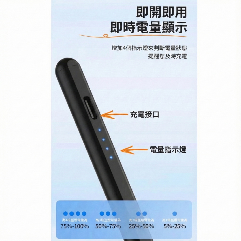 《商品介紹》攜帶方便,隨意書寫想畫就畫,想寫就寫免裝軟體,無需藍芽配對■書寫/塗鴉/繪圖最佳利器■順滑好書寫■好握好寫,攜帶方便■內建鋰電池充電設計■方便隨身攜帶1. 精密耐用纖維觸控筆頭,穩定/耐用/實用。2. 操作快速簡易,隨拿即用3. 不需搭配APP或是藍芽使用。4. 觸控位置精準,書寫非常流暢5. 本商品不是”蘋果Apple Pencil”,也與”蘋果Apple Pencil”功能不同,請確認後再購買。《注意事項》這是iPad專用觸控筆,只適用ipad及ipad mini,請先確認後再購買