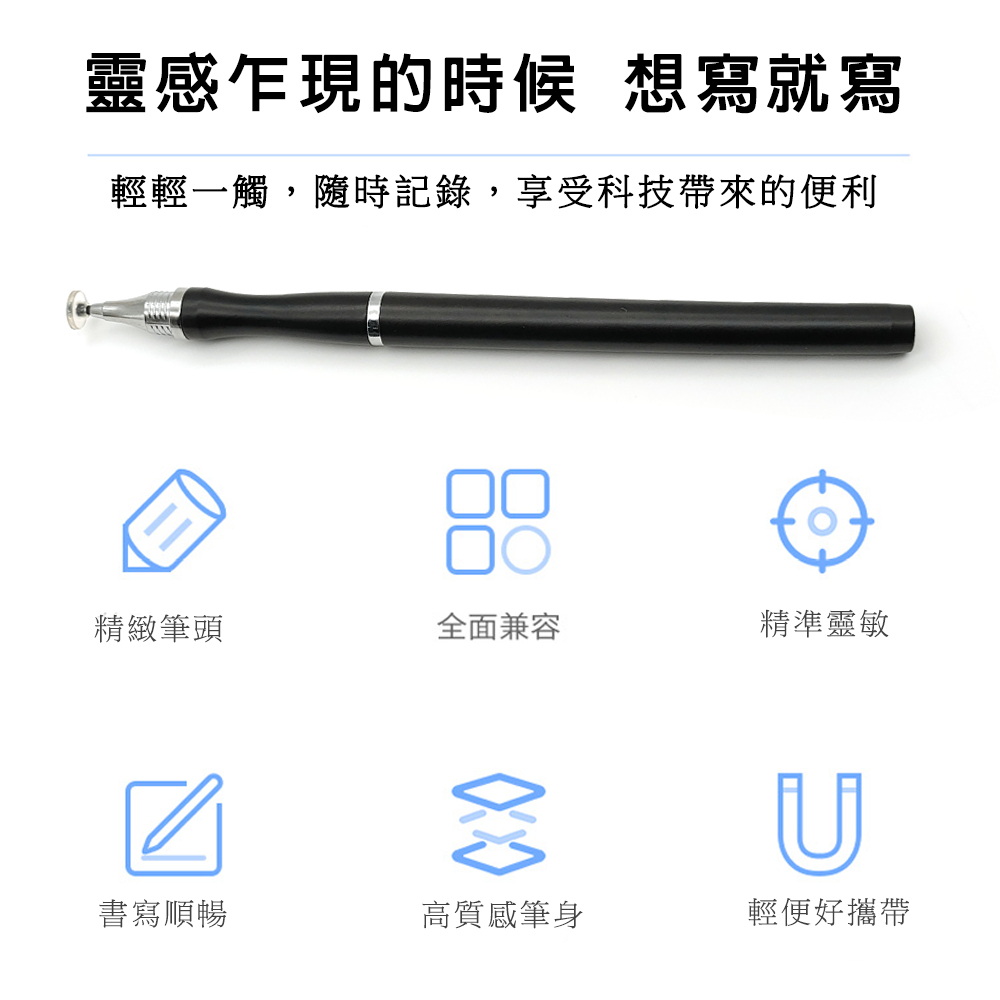 《商品介紹》攜帶方便,隨意書寫想畫就畫,想寫就寫免裝軟體,無需藍芽配對■書寫/塗鴉/繪圖最佳利器■適用所有電容式觸控螢幕■順滑好書寫■好握好寫,攜帶方便■雙頭觸控設計,粗細同時兼顧1. 本產品適用所有”蘋果/安卓/微軟”電容式觸控螢幕。2. 細字觸控筆,穩定/耐用/實用。3. 適用範圍更廣,可以使用在所有型號的iPad及iPhone, 更可以使用在電容式觸控螢幕的安卓平版及手機,微軟系統的電容式觸控螢幕也都適用。4. 書寫,精密圖稿設計,繪畫,塗抹都適合。