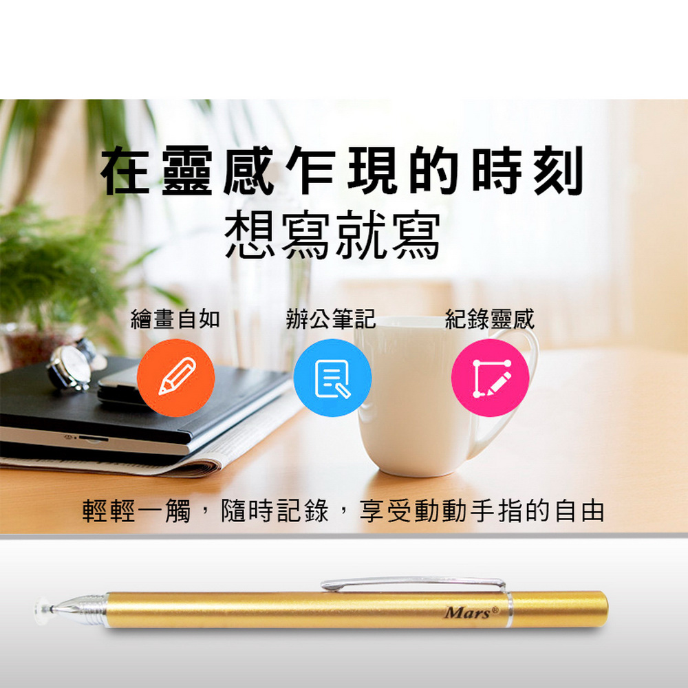 《商品介紹》攜帶方便,隨意書寫想畫就畫,想寫就寫免裝軟體,無需藍芽配對■書寫/塗鴉/繪圖最佳利器■適用所有電容式觸控螢幕■順滑好書寫■好握好寫,攜帶方便■筆夾設計,更方便隨身攜帶1. 本產品適用所有”蘋果/安卓/微軟”電容式觸控螢幕。2. 細字觸控筆,穩定/耐用/實用。3. 適用範圍更廣,可以使用在所有型號的iPad及iPhone, 更可以使用在電容式觸控螢幕的安卓平版及手機,微軟系統的電容式觸控螢幕也都適用。4. 不需搭配APP或是藍芽使用。5. 不需充電及電池就可以使用。