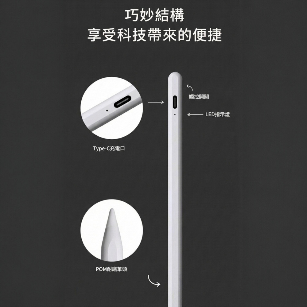 《商品介紹》攜帶方便,隨意書寫想畫就畫,想寫就寫免裝軟體,無需藍芽配對■書寫/塗鴉/繪圖最佳利器■順滑好書寫■好握好寫,攜帶方便■內建鋰電池充電設計■方便隨身攜帶1. 適用各款電容式觸控螢幕的手機或平板。2. 安卓/蘋果/微軟系統的手機或平板都適用。3. 精密耐用纖維觸控筆頭,穩定/耐用/實用。4. 操作快速簡易,隨拿即用5. 不需搭配APP或是藍芽使用。6. 觸控位置精準,書寫非常流暢7. 本商品不是”蘋果Apple Pencil”,也與”蘋果Apple Pencil”功能不同,請確認後再購買。《注意事項》這是通用款觸控筆,適用安卓/蘋果/微軟系統的手機或平板,但沒有防誤觸功能,請先確認後再購買
