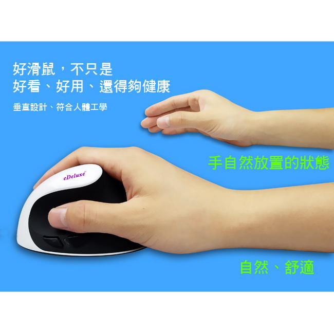 《商品介紹》握感就是這麼舒適長時間使用滑鼠一點都不累真正人體工學垂直設計光學定位精準靈敏,滾輪滾動非常流暢不需安裝任何軟體驅動,隨插即用保護手腕,避免長期使用滑鼠造成職業傷害靈敏感應,滑動自如