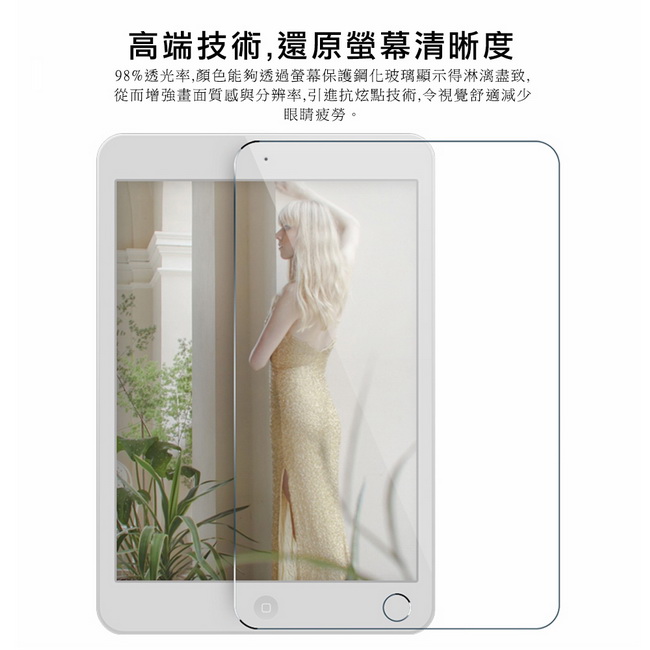 《商品介紹》輕輕呵護您的iPad螢幕高硬度耐刮耐磨■專為新款iPad螢幕量身設計■高透光率,真實呈現色彩■觸控靈敏,手感流暢順滑■超強抗汙防水,避免螢幕汙損本商品只適用9.7吋 iPad 2018/2017/Air1/Air2/Pro,購買前,請先確認iPad的尺寸及型號。