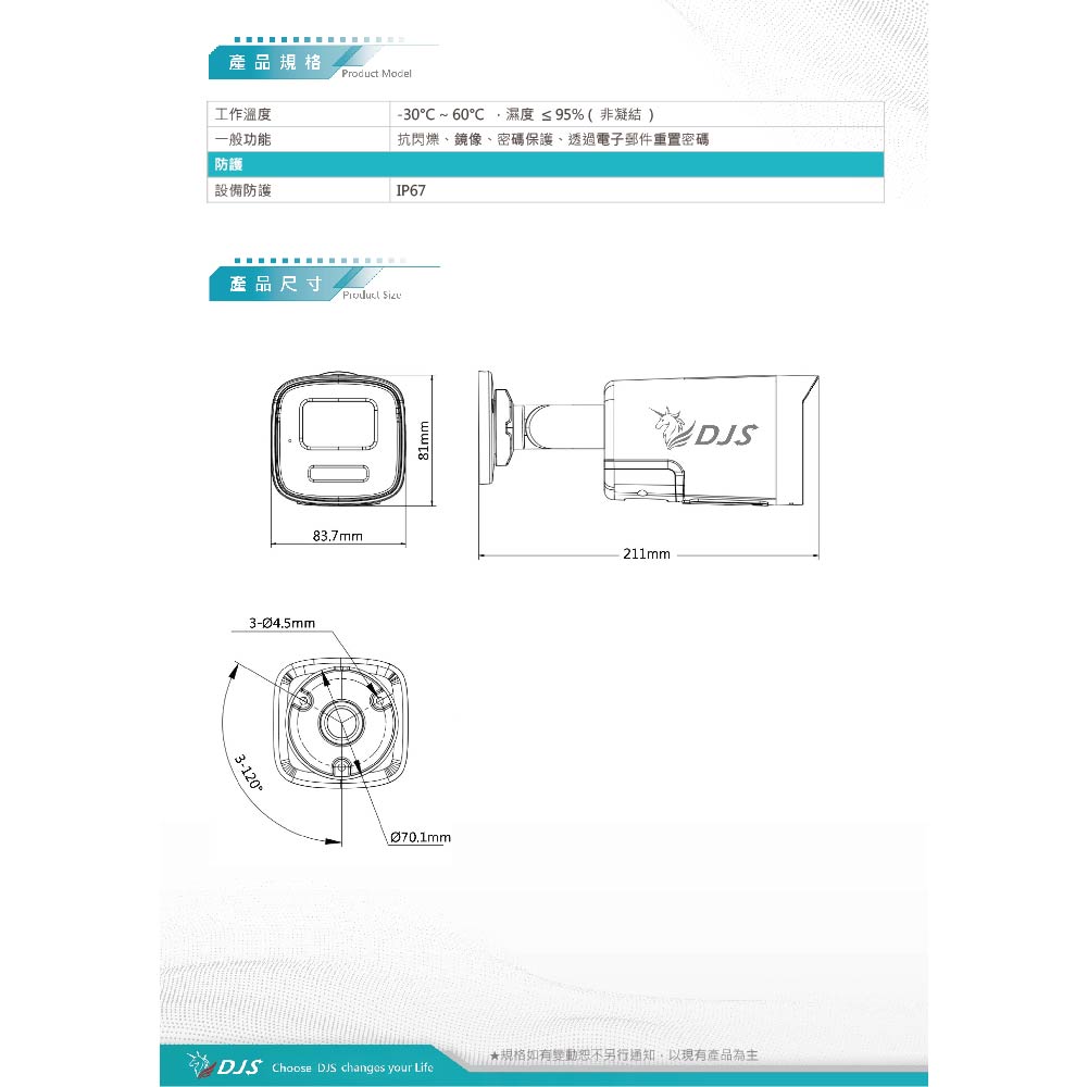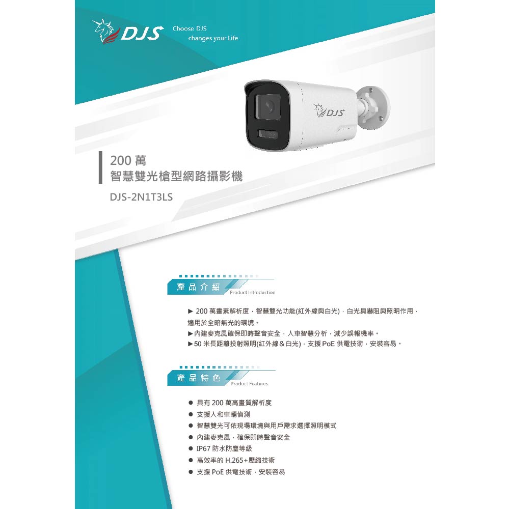 昌運監視器 DJS-2N1T3LS 200萬智慧雙光槍型網路攝影機 智慧雙光功能 內建麥克風