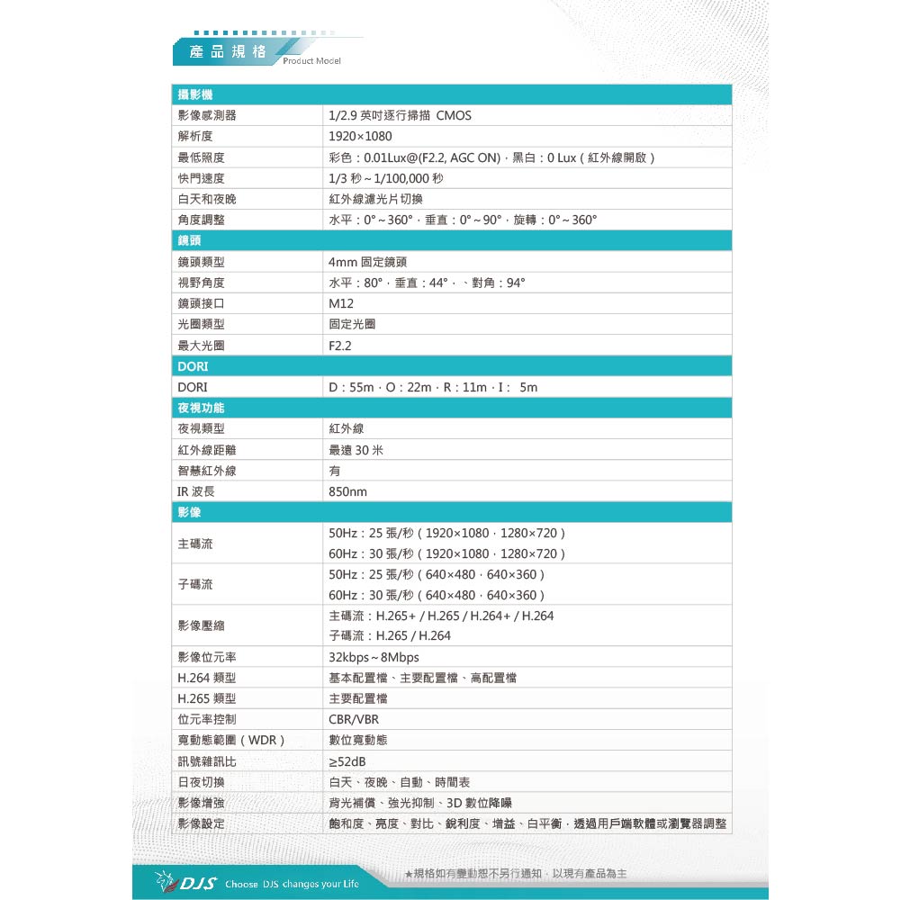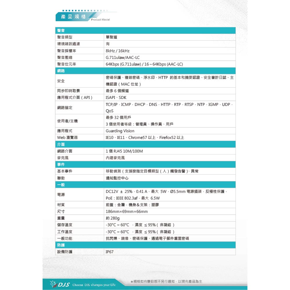 昌運監視器 DJS-2N101IRS 200萬紅外線槍型網路攝影機 內建麥克風