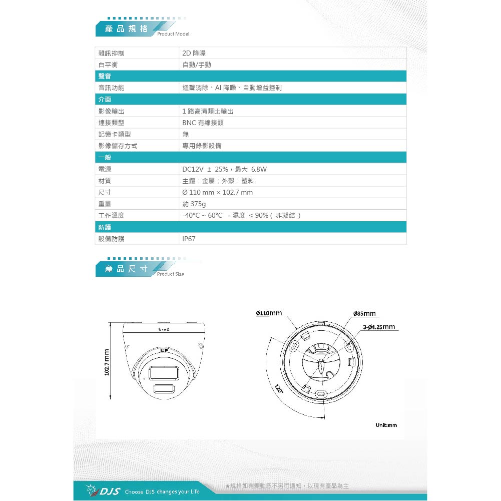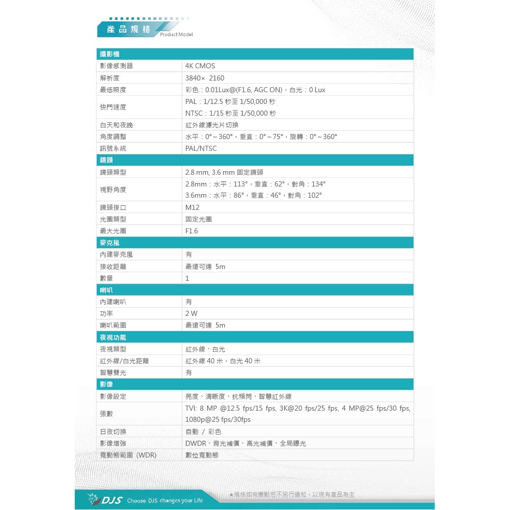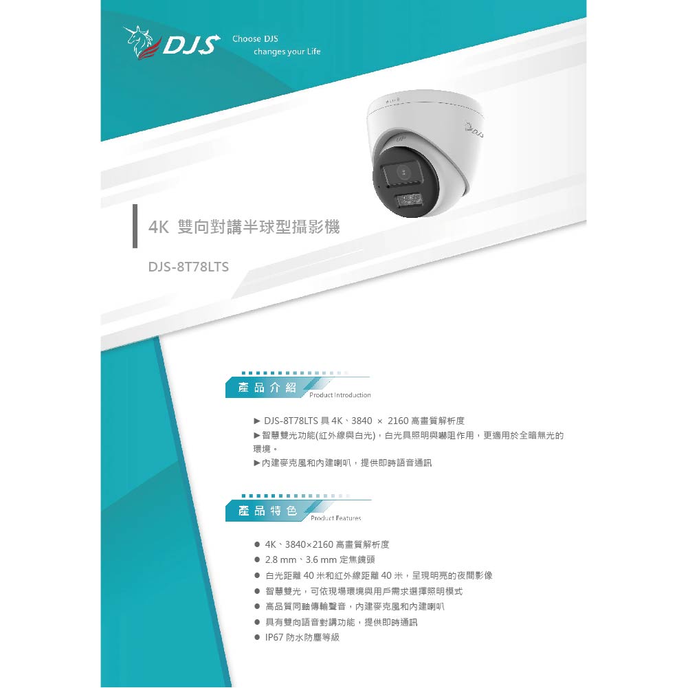 昌運監視器 DJS-8T78LTS 4K 雙向對講半球型攝影機 智慧雙光功能 內建麥克風和喇叭