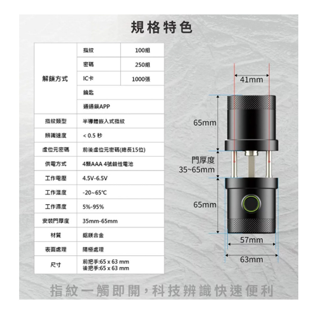 -指紋、密碼、鑰匙、藍牙、感應開鎖