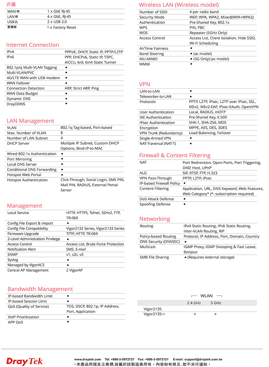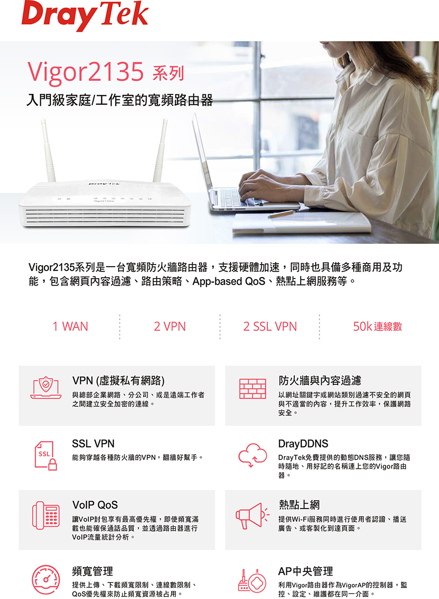 昌運監視器 DrayTek Vigor2135 單WAN VPN防火牆路由器