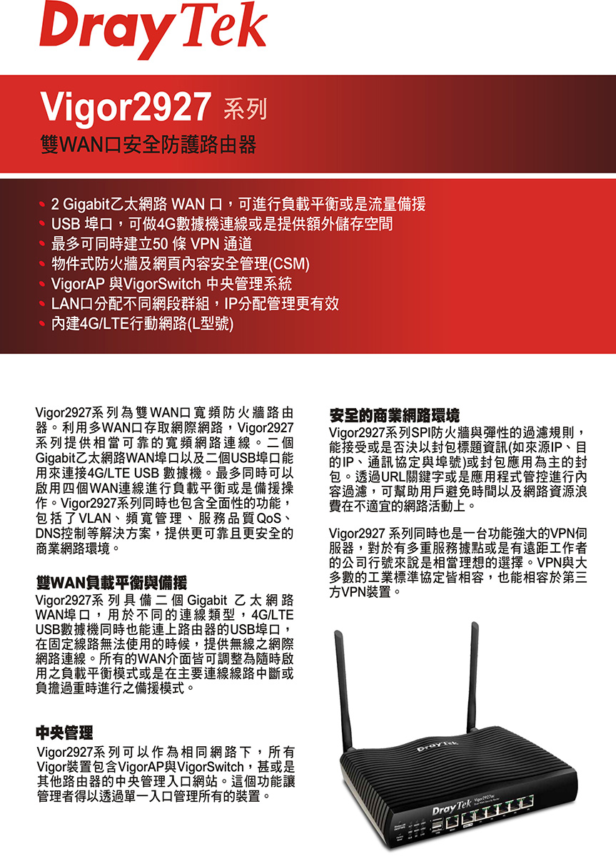 昌運監視器 DrayTek Vigor2927 雙WAN寬頻防火牆路由器