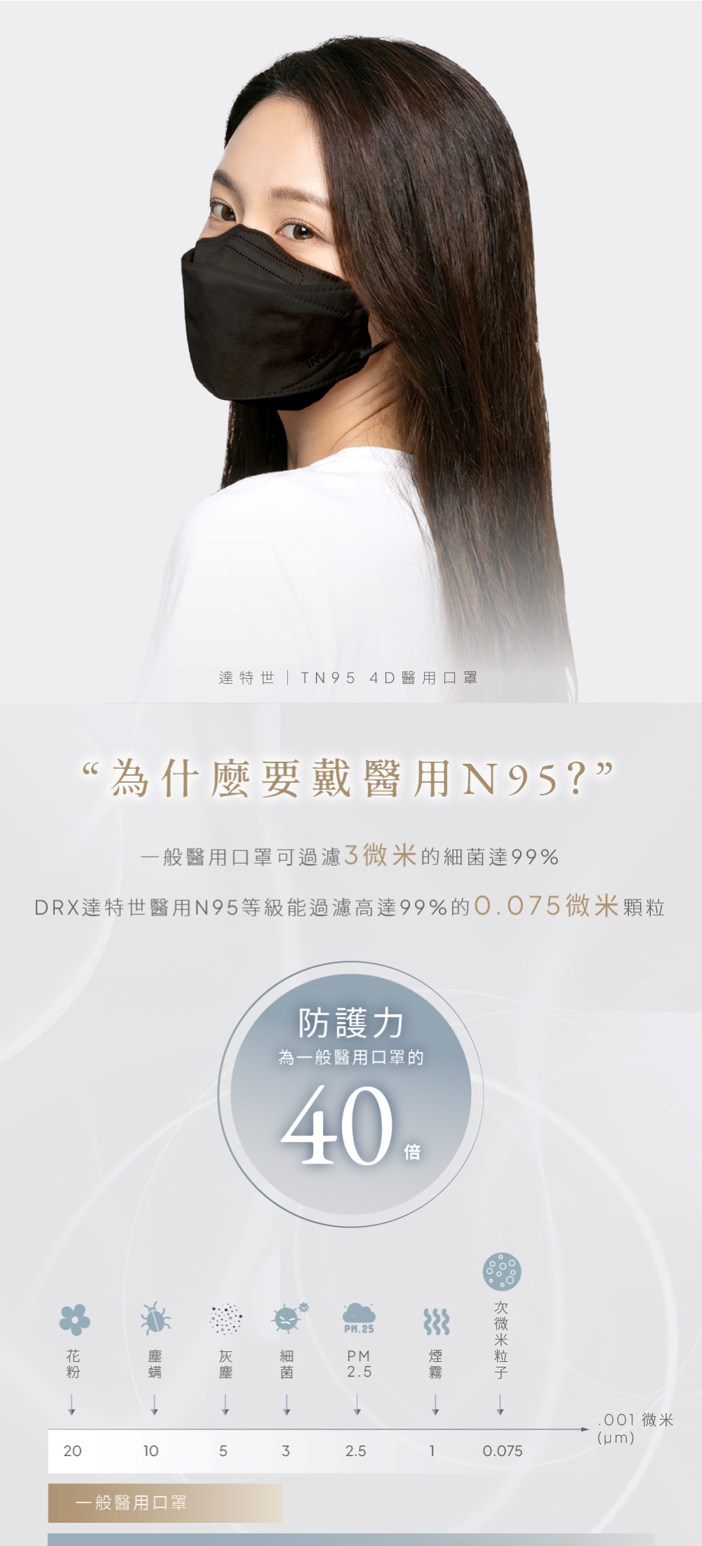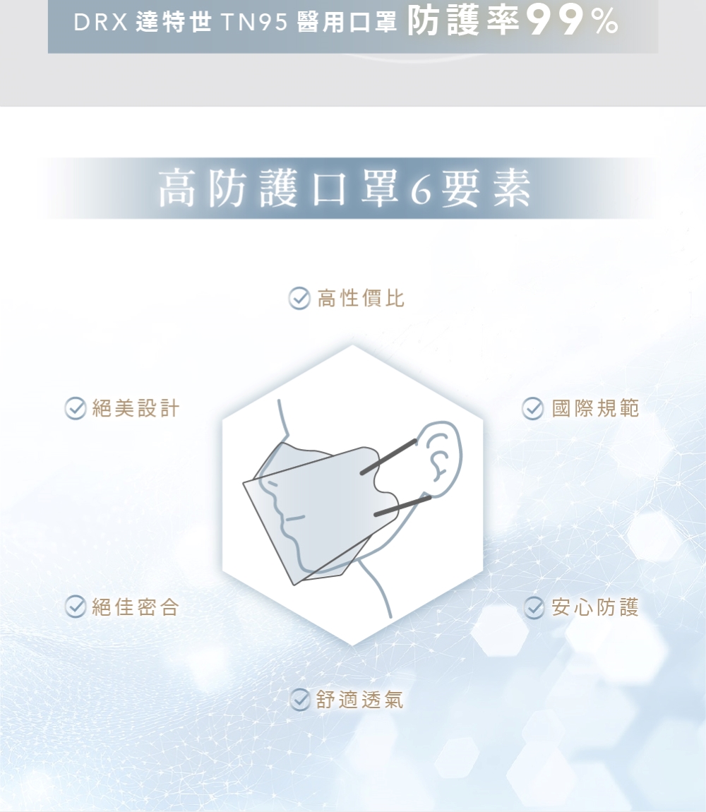 【DRX達特世】TN95醫用4D口罩-繽紛系列-TN95成人-冰晶白(20入)