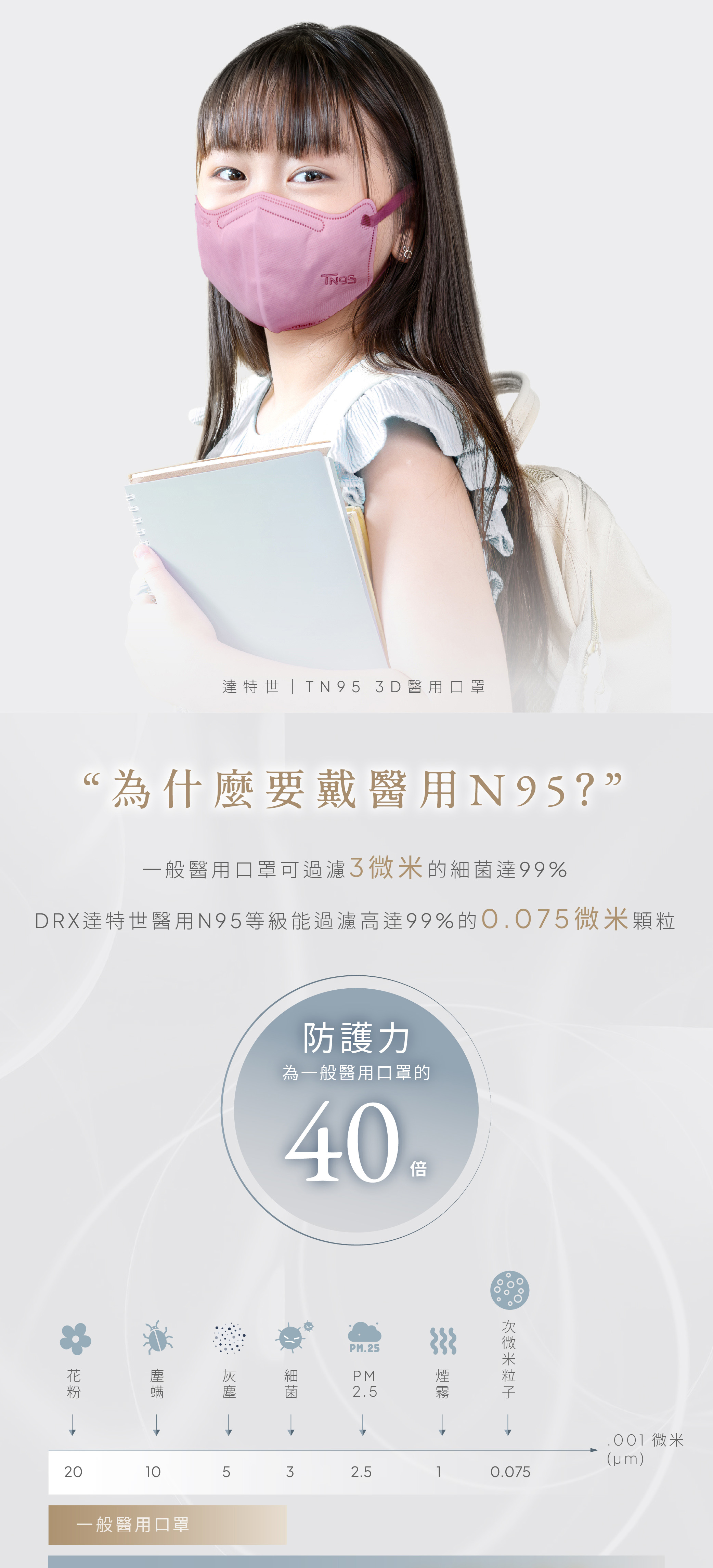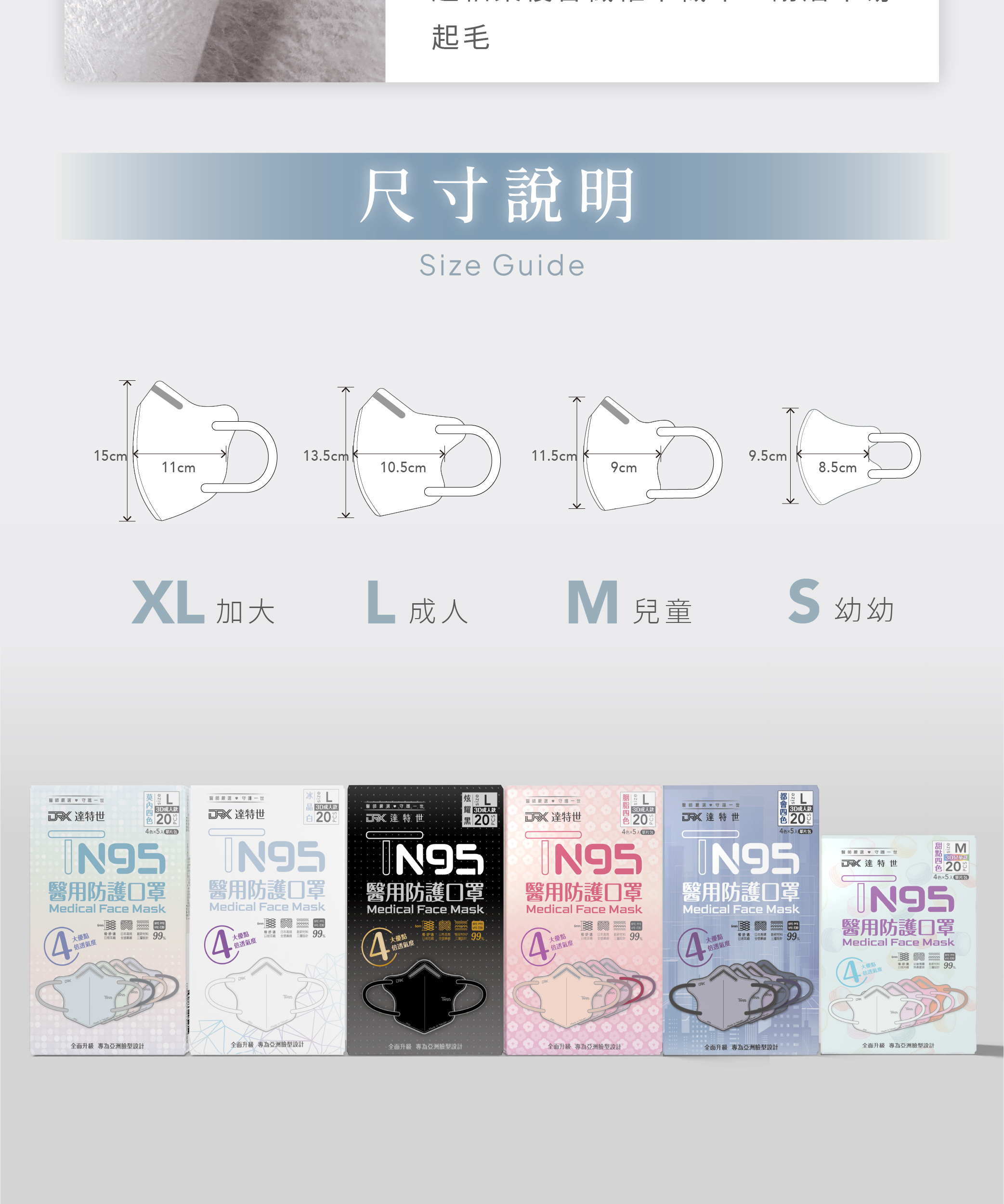 【DRX達特世】TN95醫用3D口罩-冰晶白-幼幼S(20入)