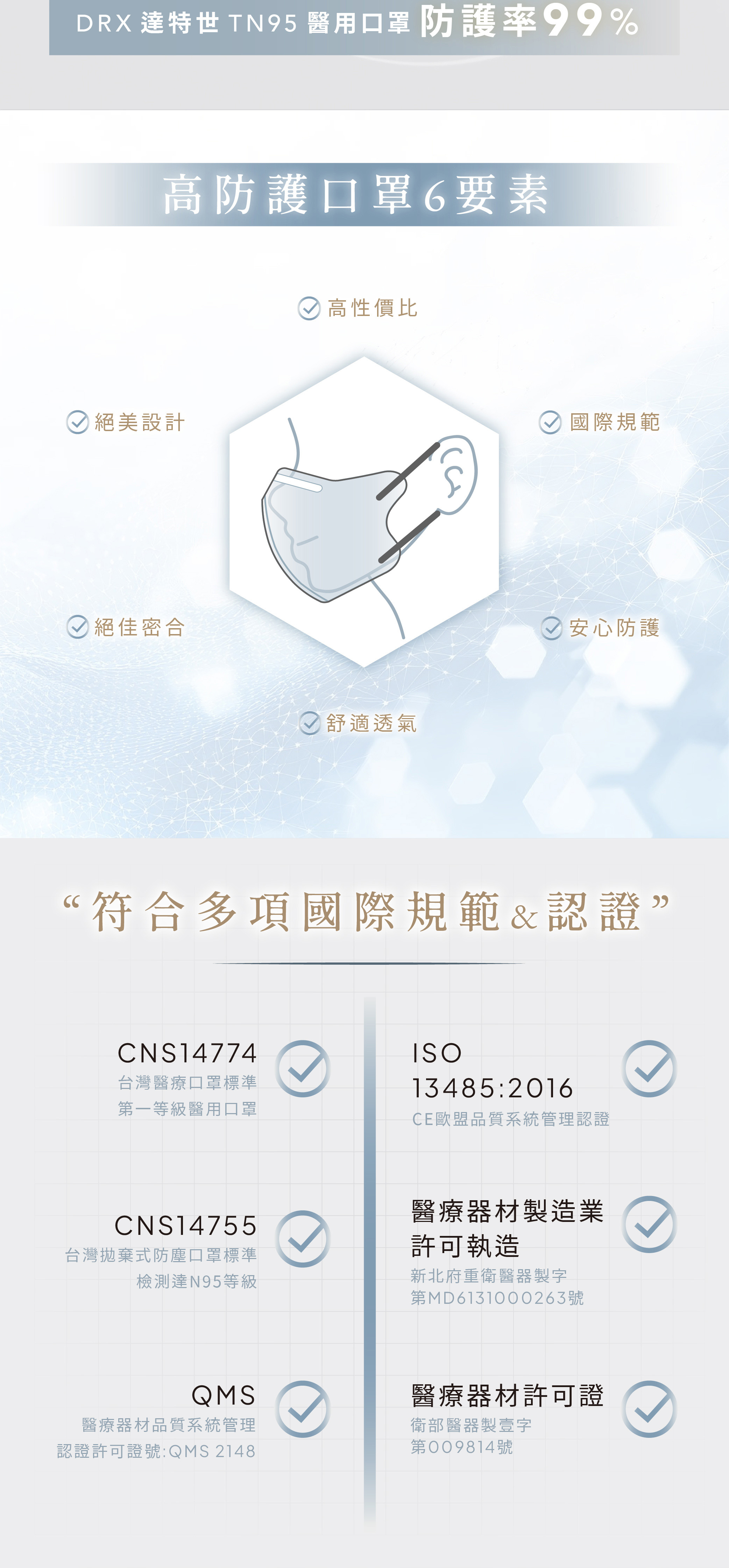 「消費者使用前應詳閱醫療器材說明書」●醫療器材品名: "達特世" 醫用口罩 (未滅菌)●醫療器材許可證字號:衛部醫器製壹字第008685號●許可證所有人:達特世生技有限公司●許可證所有人地址:新北市三重區溪尾街14號5樓●製造業者名稱:達特世生技有限公司●製造業者地址:新北市三重區溪尾街14號5樓之1及5樓之2●醫療器材商名稱:達特世生技有限公司●醫療器材商地址:新北市三重區溪尾街14號5樓●醫療器材商許可證字號:新北府重衛醫器販字第 MD6231017084 號●醫療器材商諮詢專線:02-22868689品牌:DRX 達特世規格:20入/1組貨源:自產自銷產地:台灣材質:不織布保存期限:4年「此商品屬個人衛生用品,不適用七天鑑賞期法規,拆封無猶豫期,如欲退貨請勿拆封。」【小提醒】服務時間:周一至週五 09:00 ~ 18:00 (例假日、國定假日除外)假日不出貨,顏色及數量已當下實際庫存量為主,庫存量不足將另行通知!※蝦皮代開發票,發票如需開立統編抬頭,請結帳前,務必填寫完整。※※口罩屬個人衛生用品故經拆封後符合消保法第十九條所訂定之合理例外情事,無七日猶豫期,如欲退貨請勿拆封※※每批布的顏色,略有色差,依實際出貨商品為主※#不脫妝 #單片包裝 #防脫妝 #獨立包裝 #小顏 #日本口罩注意: 由於超商有寄貨限制,一筆訂單最多18盒 (如果超過18盒, 請分兩筆訂單下單)注意: 由於超商有寄貨限制,一筆訂單最多18盒 (如果超過18盒, 請分兩筆訂單下單)注意: 由於超商有寄貨限制,一筆訂單最多18盒 (如果超過18盒, 請分兩筆訂單下單)【商品資訊】●醫療器材品名: "達特世" 醫用口罩 (未滅菌)●醫療器材許可證字號:衛部醫器製壹字第008685號●規格:20片/盒●尺寸:9.5公分 X 8.5公分 (±0.5cm)●主要成分或材料:防潑水性不織布、醫用等級熔噴不織布、親膚性不織布●保存期限:4年●製造日期:2025.01.04●商品原產地:台灣●貨源:公司貨【醫療器材許可證】核定中文品名: "達特世" 醫用口罩 (未滅菌)核准字號:衛部醫器製壹字第008685號製造業者名稱:達特世生技有限公司製造業者地址:新北市三重區溪尾街14號5樓之1及5樓之2【販賣業醫療器材商許可執照】許可執照字號: 新北府重衛醫器販字第 MD6231017084 號醫療器材商名稱:達特世生技有限公司地址:新北市三重區溪尾街14號5樓諮詢專線電話:02-22868689