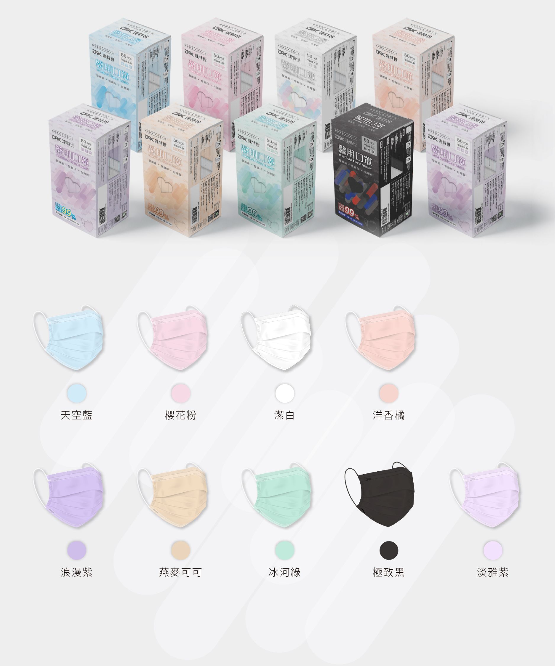 「消費者使用前應詳閱醫療器材說明書」●醫療器材品名: "達特世" 醫用口罩 (未滅菌)●醫療器材許可證字號:衛部醫器製壹字第008685號●許可證所有人:達特世生技有限公司●許可證所有人地址:新北市三重區溪尾街14號5樓●製造業者名稱:達特世生技有限公司●製造業者地址:新北市三重區溪尾街14號5樓之1及5樓之2●醫療器材商名稱:達特世生技有限公司●醫療器材商地址:新北市三重區溪尾街14號5樓●醫療器材商許可證字號:新北府重衛醫器販字第 MD6231017084 號●醫療器材商諮詢專線:02-22868689品牌:DRX 達特世規格:100入/1組貨源:自產自銷產地:台灣材質:不織布保存期限:5年「此商品屬個人衛生用品,不適用七天鑑賞期法規,拆封無猶豫期,如欲退貨請勿拆封。」【小提醒】※假日不出貨,顏色及數量已當下實際庫存量為主,庫存量不足將另行通知※※口罩屬個人衛生用品故經拆封後符合消保法第十九條所訂定之合理例外情事,無七日猶豫期,如欲退貨請勿拆封※※每批布的顏色,略有色差,依實際出貨商品為主※注意: 由於超商有寄貨限制,一筆訂單最多6盒 (如果超過6盒, 請分兩筆訂單下單)注意: 由於超商有寄貨限制,一筆訂單最多6盒 (如果超過6盒, 請分兩筆訂單下單)注意: 由於超商有寄貨限制,一筆訂單最多6盒 (如果超過6盒, 請分兩筆訂單下單)【商品特色】✨無勒感耳帶/透氣不悶熱✨通過CNS14774測試標準✨台灣生產製造,品質保證【商品資訊】●醫療器材品名: "達特世" 醫用口罩 (未滅菌)●醫療器材許可證字號:衛部醫器製壹字第008685號●規格:午夜藍 石墨灰 氣質灰 雲霧灰 霧霾藍 100片/盒 (5色綜合) ●尺寸:17.5cm*9.5cm(±0.5cm)●主要成分或材料:防潑水性不織布、熔噴不織布、親膚性不織布●保存期限:5年●製造日期:2025.07.14●商品原產地:台灣●貨源:公司貨【醫療器材許可證】核定中文品名: "達特世" 醫用口罩 (未滅菌)核准字號:衛部醫器製壹字第008685號製造業者名稱:達特世生技有限公司製造業者地址:新北市三重區溪尾街14號5樓之1【販賣業醫療器材商許可執照】許可執照字號: 新北府重衛醫器販字第 MD6231017084 號醫療器材商名稱:達特世生技有限公司地址:新北市三重區溪尾街14號5樓諮詢專線電話:02-22868689