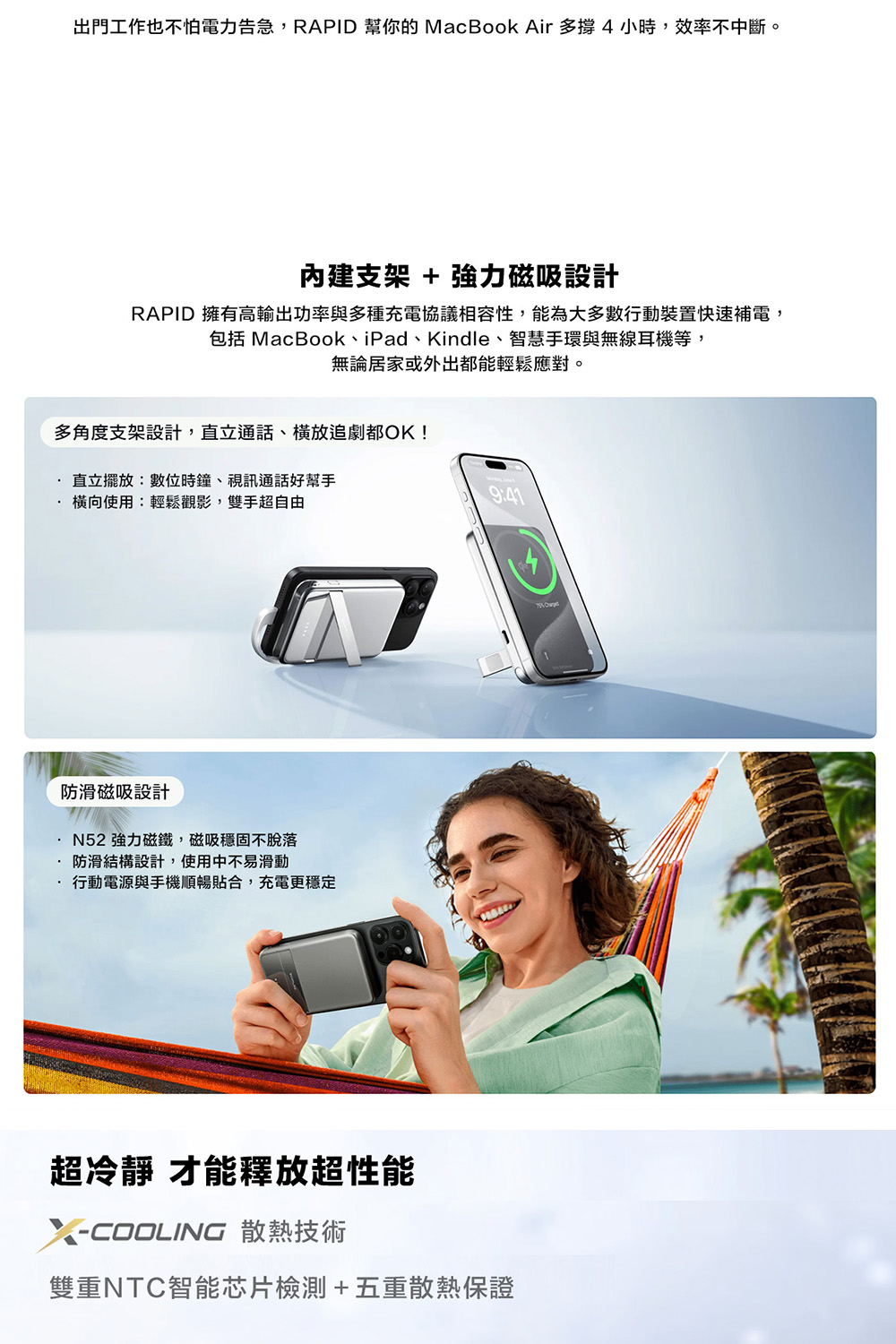 30W 內建線材超快充:內建 30W 快充線,無需額外攜帶傳輸線,隨插即用,隨時享受磁吸便利與極速充電體驗。