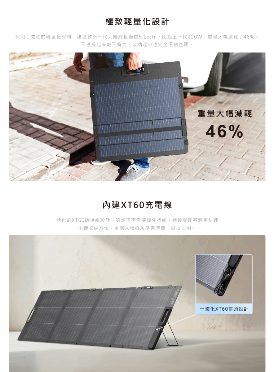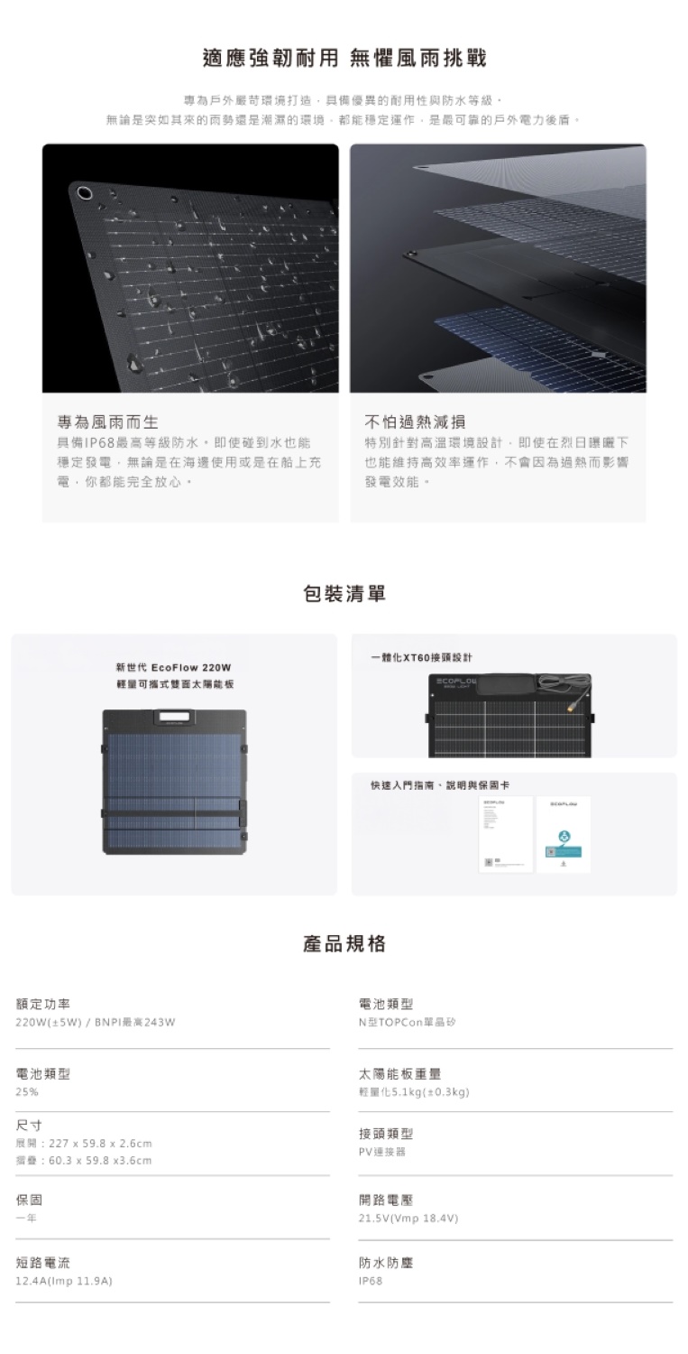 EcoFlow 220W XT60i 雙面輕量便攜太陽能板