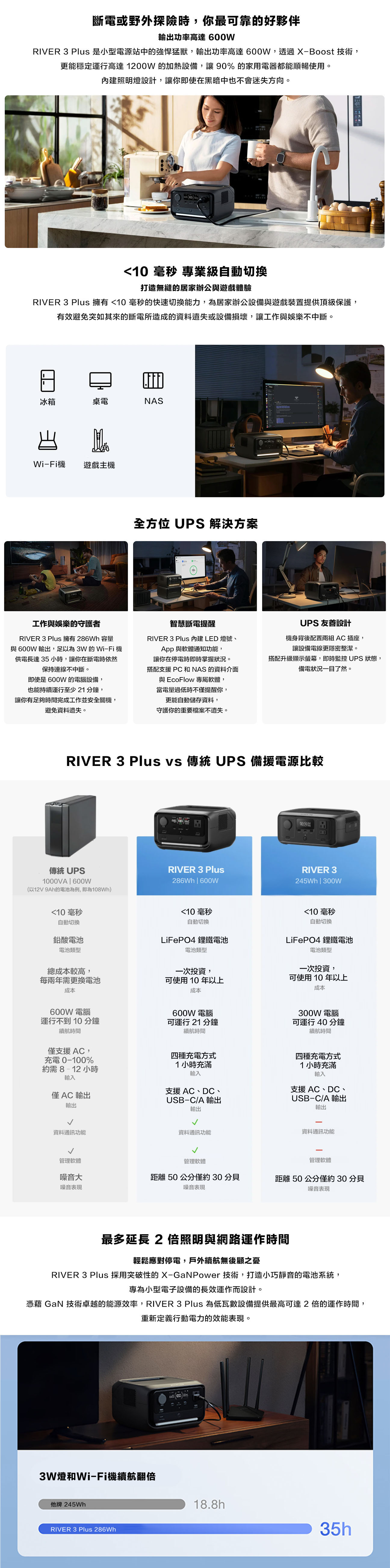 • <10 毫秒 專業級 UPS,保護精密設備不中斷<br>• 額定輸出功率 600W,支援 X-Boost 高達 1200W• 低瓦數電器使用時間可達 2 倍• 可擴充至 858Wh,免插線連接更簡單• 體積小巧,輕盈便攜• 1 小時快速充電,不傷電池• 支援最高 220W 的快速太陽能充電• <30 分貝超靜音運作,全天候使用無負擔<br>• 原廠提供 5 年保固• NCC認證字號:CCAF24Y10420T3• BSMI認證字號:R3H106