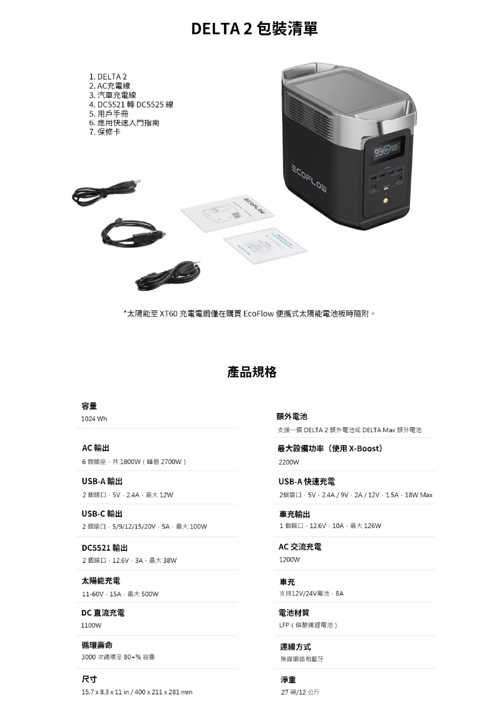 EcoFlow Delta 2 儲能電源+額外電池組合+贈專用收納包