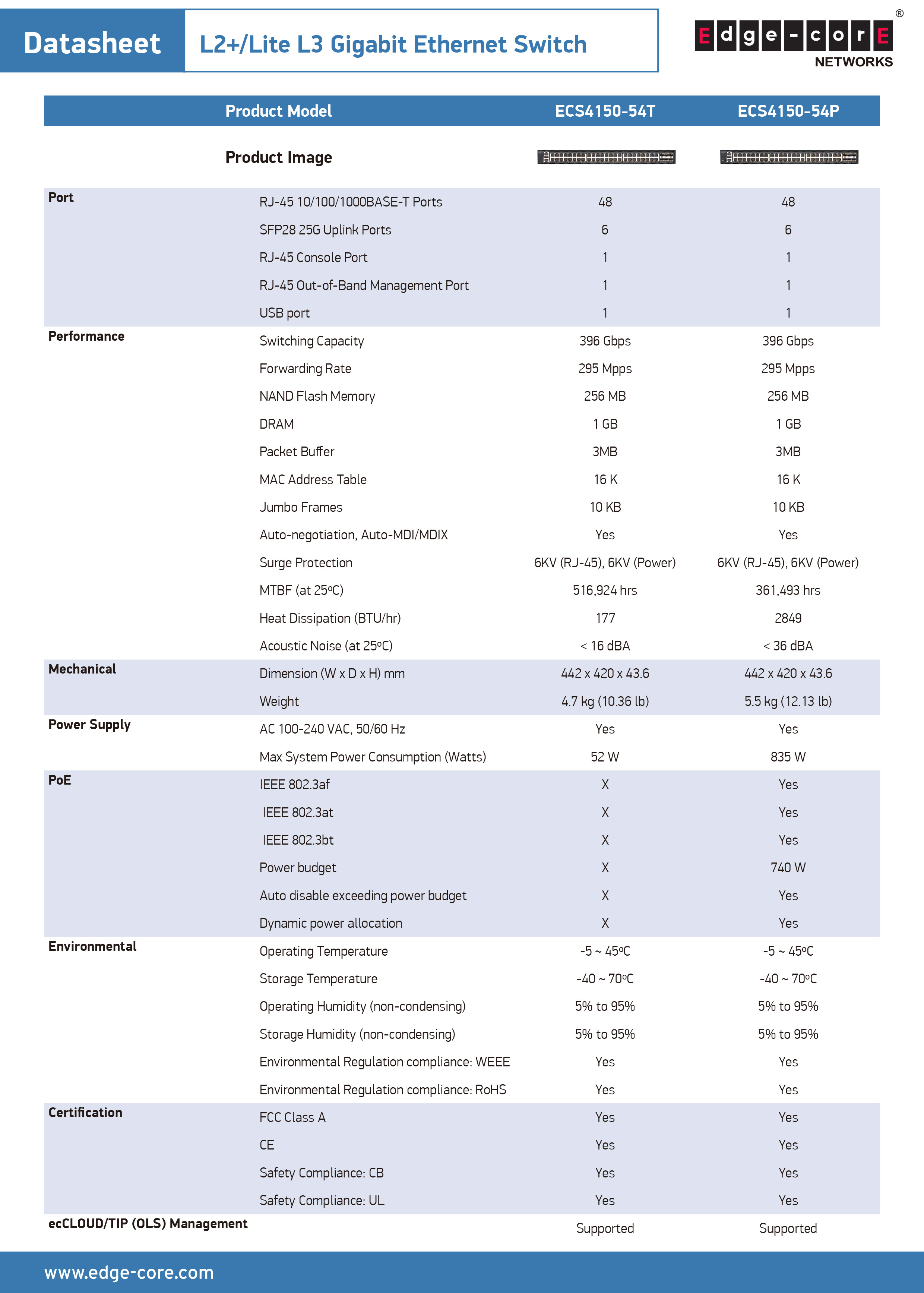 昌運監視器 Edge-corE Edgecore ECS4150-54P L2網管型PoE交換器