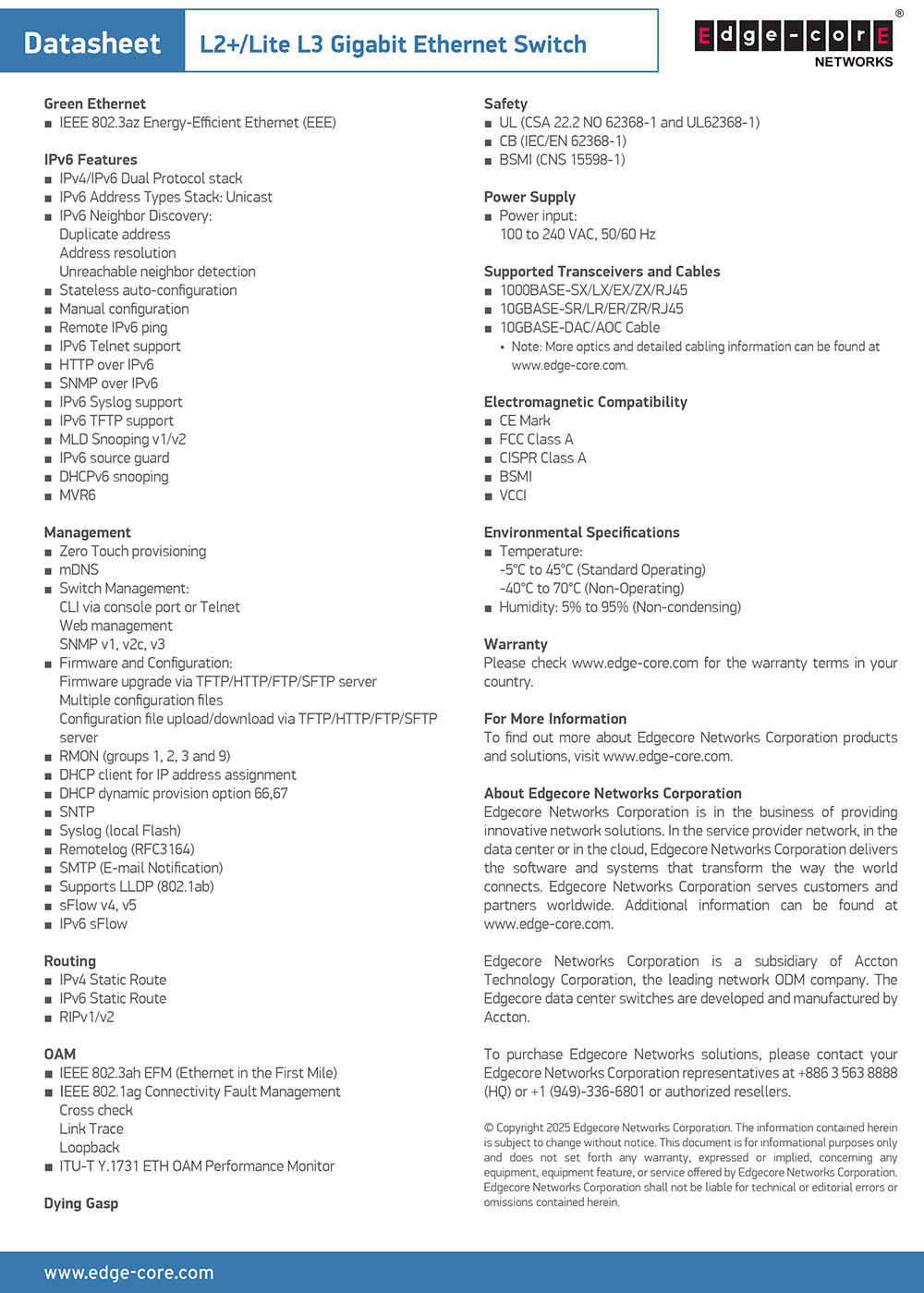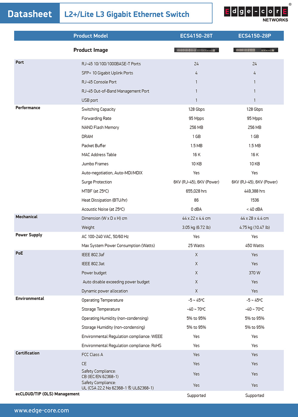 昌運監視器 Edge-corE Edgecore ECS4150-28P 24埠Gigabit L2+網管型PoE交換器