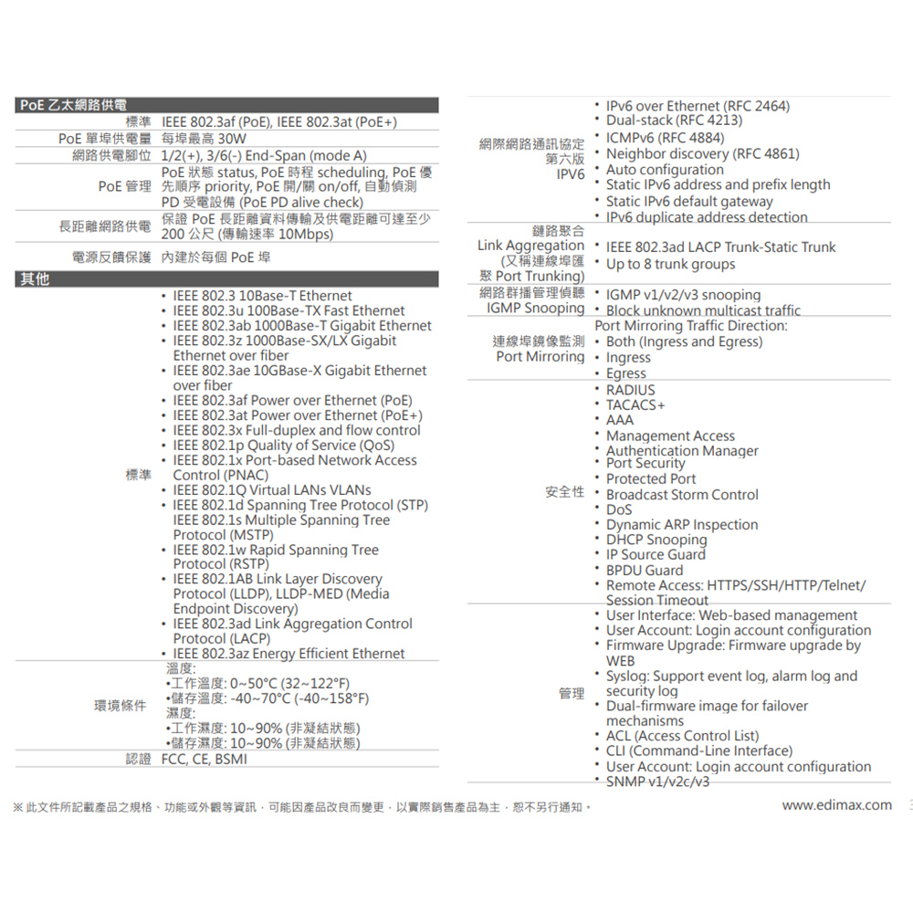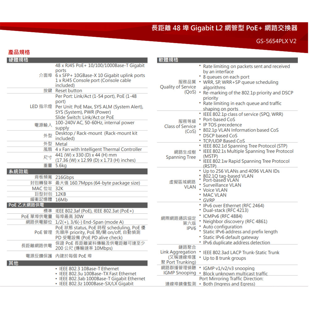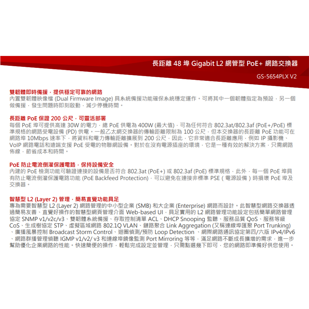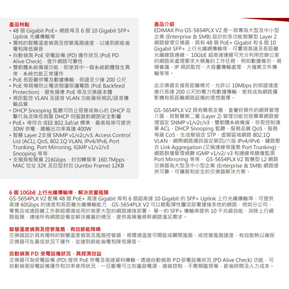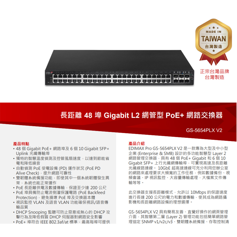 昌運監視器 EDIMAX 訊舟 GS-5654PLX V2 (MIT) 長距離 48埠 L2 網管型 PoE+網路交換器