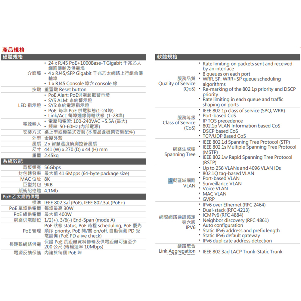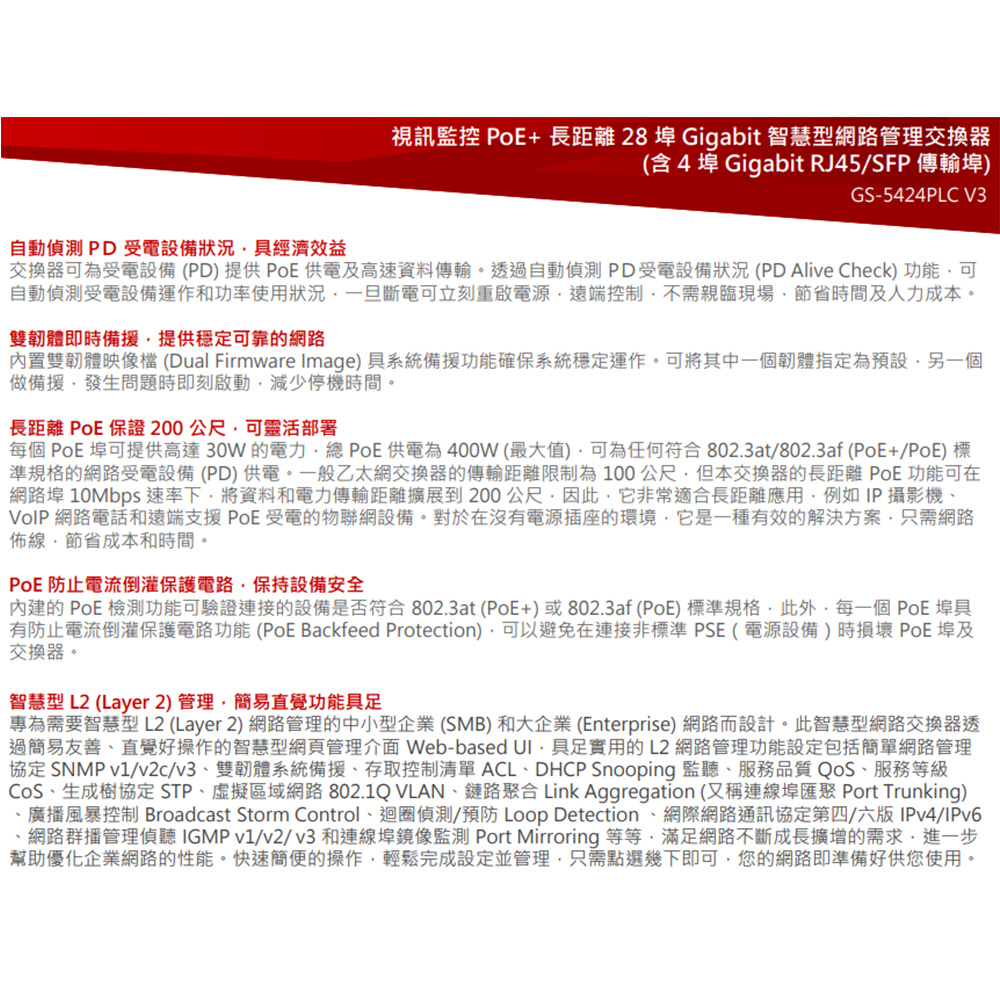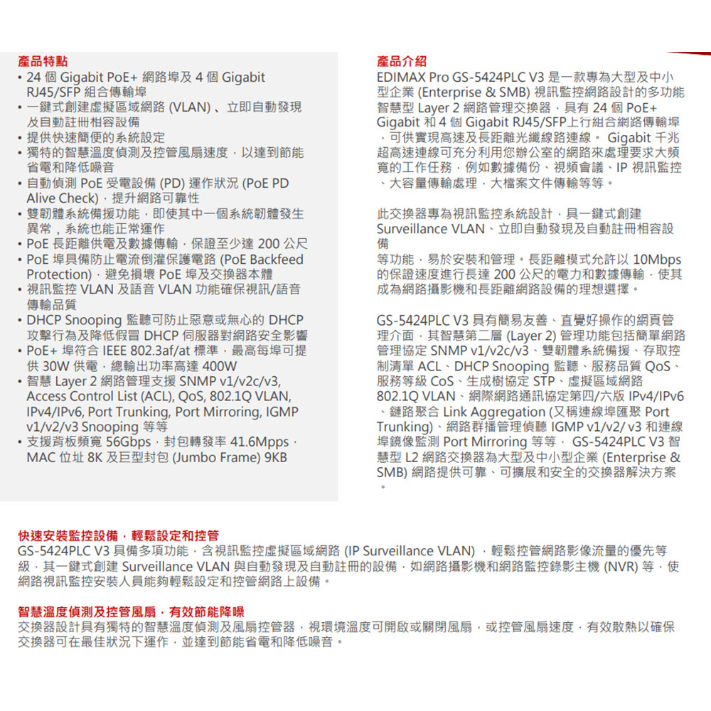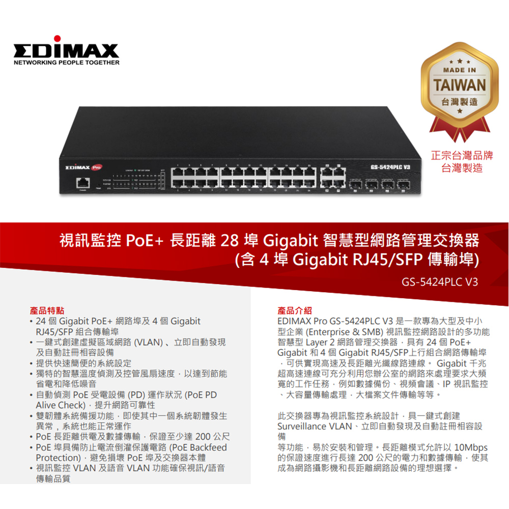 昌運監視器 EDIMAX 訊舟 GS-5424PLC V3 (MIT) 視訊監控 PoE+ 28埠 智慧型網路交換器