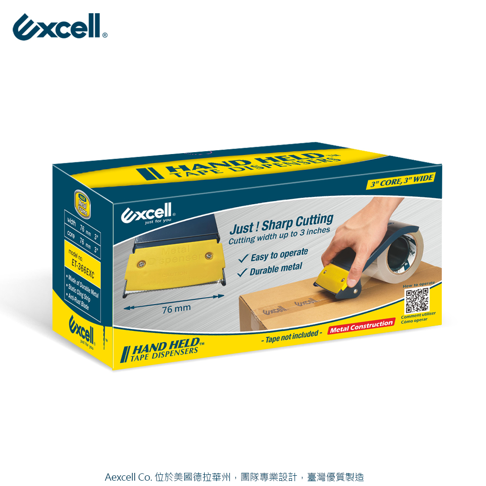- 品牌:Excell 膠帶切割器 / 封箱切台- 型號:ET-366- 適用尺寸:3吋管芯膠帶- 切台寬度:76mm- 適合膠帶長度:50M- 注意事項:本賣場販售單獨切台一只,不附膠帶,刀片不可替換。