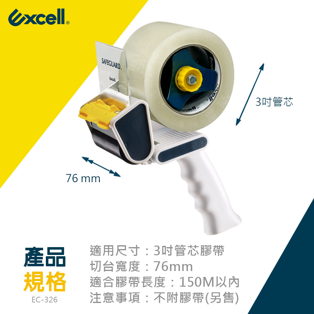 - 品牌:Excell 膠帶切割器 / 握把式封箱切台- 型號:EC-326- 適用尺寸:3吋管芯膠帶- 切台寬度:76mm- 適合膠帶長度:150M以內- 注意事項:本賣場販售單獨切台一只,不附膠帶,刀片不可替換。☆加寬刀片:76mm超寬切割範圍,切削省力超有效率。